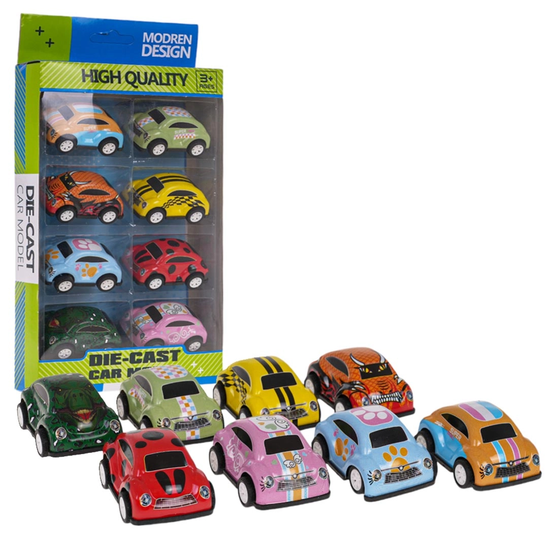 Šis košais 8 mini mašīnīšu komplekts apvieno izturību, dizainu un vienkāršu lietošanu. Metāla virsbūve ar mūsdienīgiem motīviem un gumijas riepas nodrošina ilgu kalpošanas laiku un teicamu saķeri uz gludām virsmām. Inerces (pull-back) piedziņa ļauj mašīnītēm pēc īsas atvilkšanas pašām strauji doties uz priekšu.