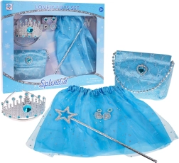 Komplekts mazajai princesei piedāvā plašu aksesuāru klāstu, ar kuriem ikviens bērns var kļūt par to, ko vien vēlas. Kvalitatīvs izpildījums ar uzsvaru uz detaļām skaistā zilā krāsā sniedz prieku un rosina iztēli jūsu mazajam dārgumam.