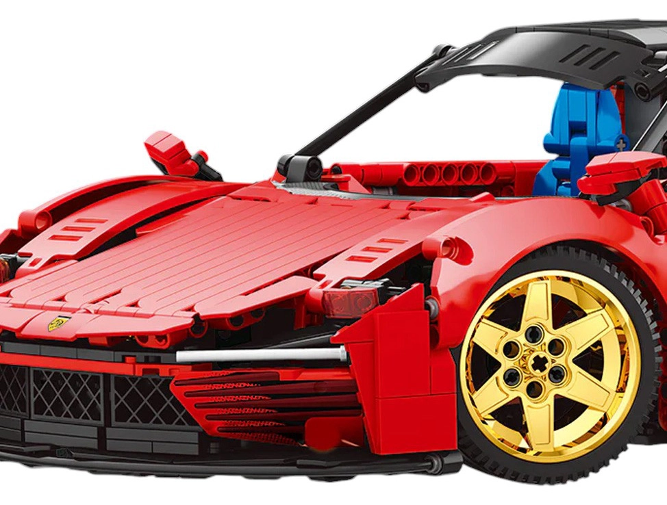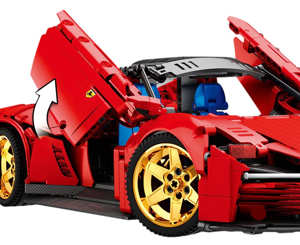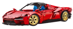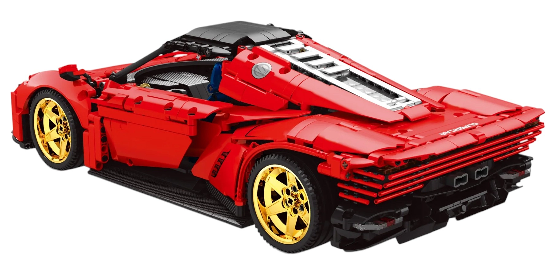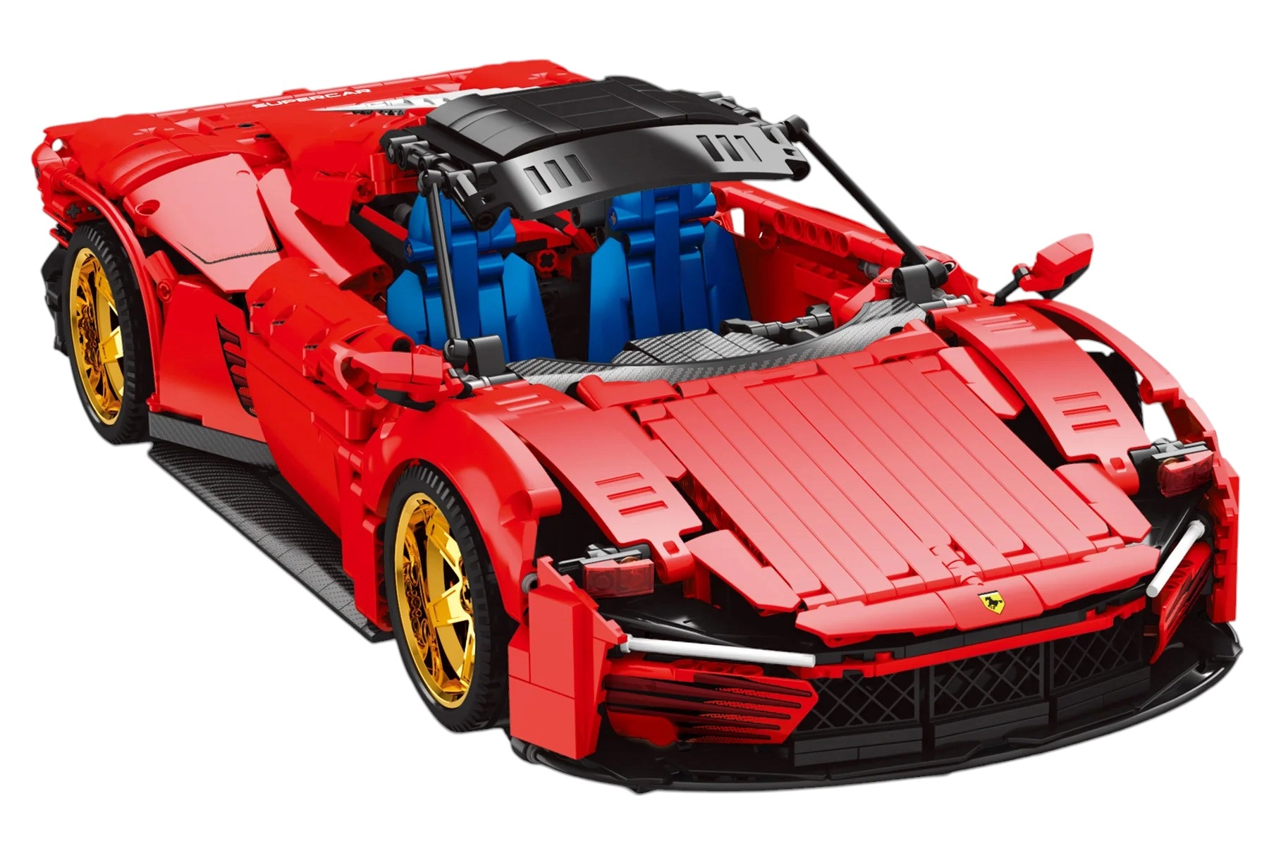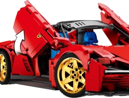 Sarkanās sporta automašīnas konstruktors ir lieliska izvēle visiem auto un būvēšanas izaicinājumu cienītājiem. Modelim ir atveramas durvis un nolaižama aizmugures daļa, kas piešķir autentiskumu.