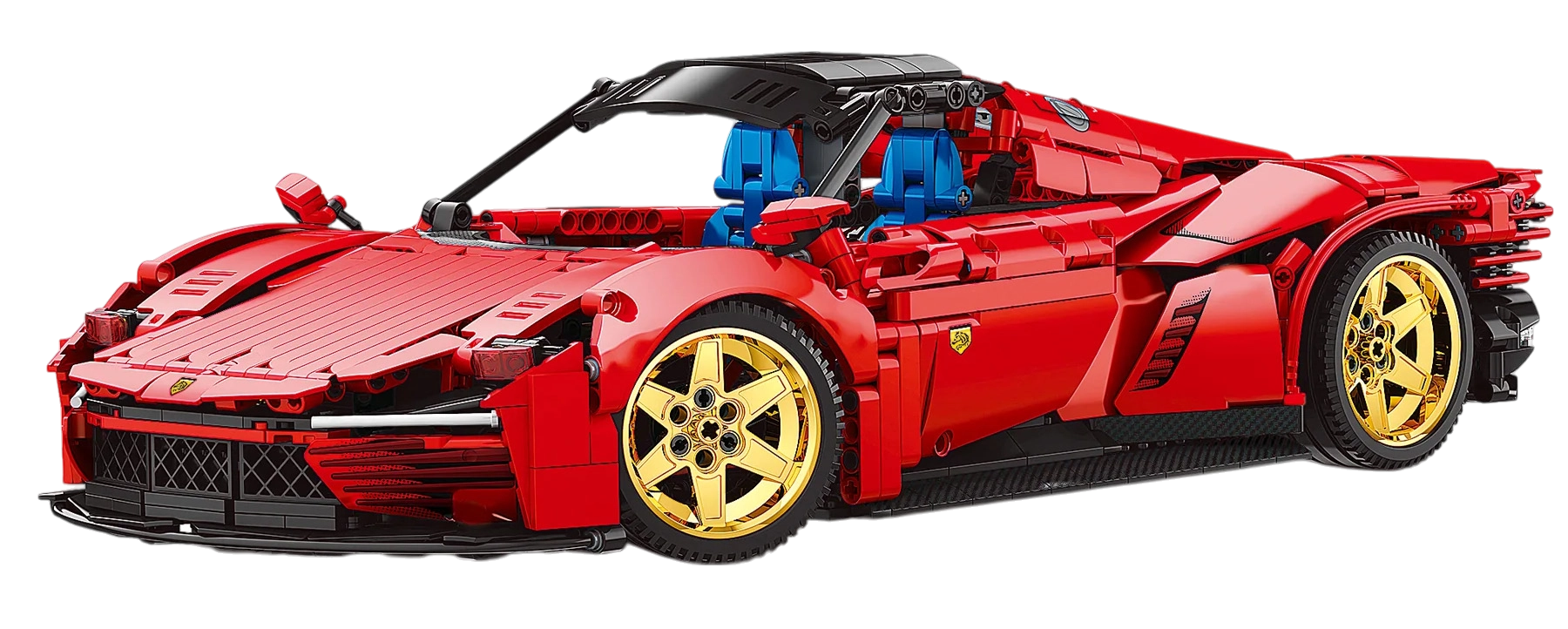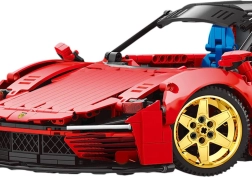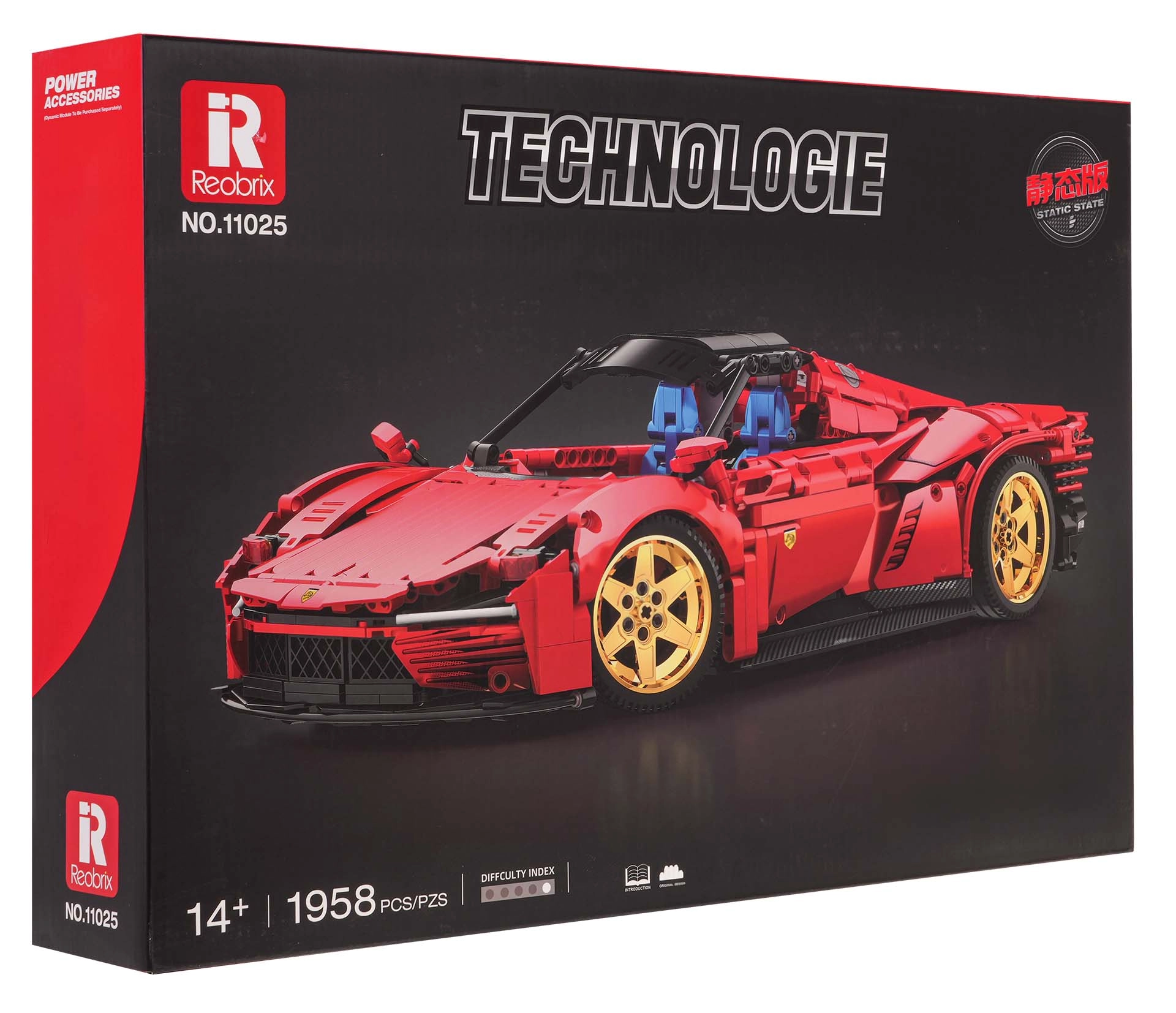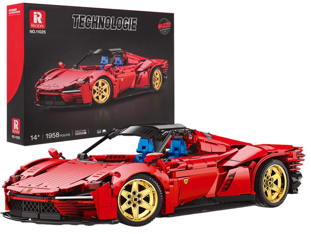 Sarkanās sporta automašīnas konstruktors ir lieliska izvēle visiem auto un būvēšanas izaicinājumu cienītājiem. Modelim ir atveramas durvis un nolaižama aizmugures daļa, kas piešķir autentiskumu.