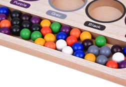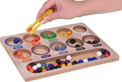 Koka izglītojošā mozaīka ar krāsainām bumbiņām ir kas vairāk nekā rotaļlieta. Tā ir līdzeklis, kas palīdz attīstīt sīko motoriku un roku-acu koordināciju. Bērni apgūst krāsu atpazīšanu, skaitīšanas pamatus un organizēšanu, kas veicina viņu kognitīvo attīstību.