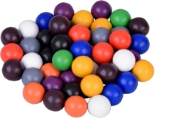 - 50 krāsainas bumbiņas (zilas, sarkanas, zaļas, dzeltenas, baltas, oranžas, violetas, pelēkas, melnas un brūnas),