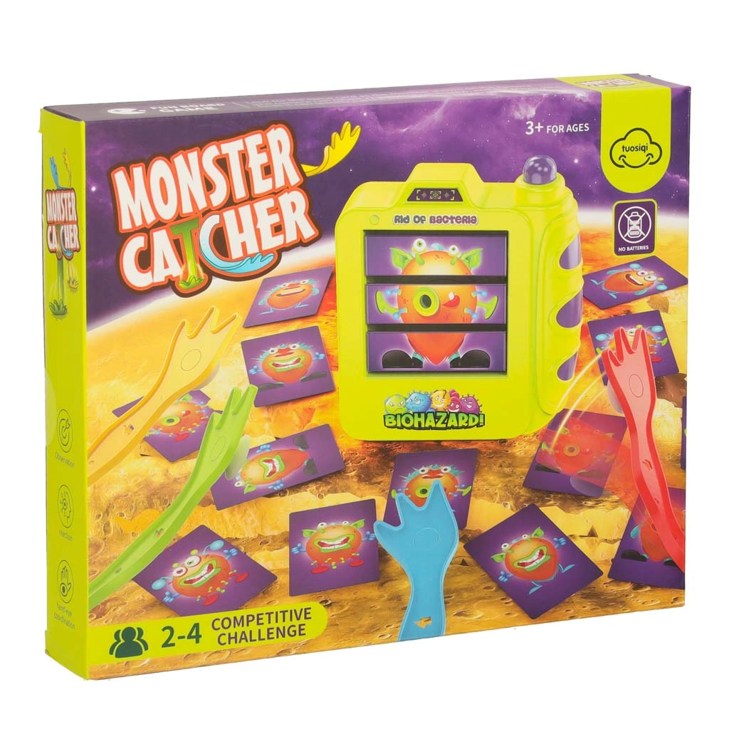“Noķer briesmonīšus” ir dinamiska spēle 2–4 spēlētājiem no 3 gadu vecuma. Viens spēlētājs atklāj briesmonīša attēlu plastmasas “fotoaparātā”, un visi cenšas pēc iespējas ātrāk atrast atbilstošo karti uz galda. Kurš to pirmais atpazīst, tam tā krāsainā ķepa jānoķer zibenīgi – un tiek iegūts punkts!
