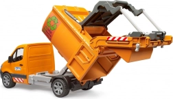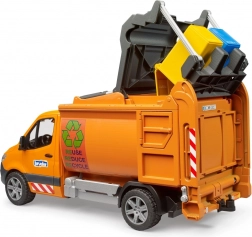 Šis pilsētas atkritumu savācējs BRUDER precīzi ataino īsto MERCEDES-BENZ Sprinter. Pateicoties kompaktajiem izmēriem, tas “tiek” visur, kur lielie atkritumu auto nebrauc. Izmetot konteinerus, automātiski atveras jumta lūka un pēc nolaišanas atkal aizveras. Aizmugurējās izkraušanas durvis ļauj viegli izbērt kravu.