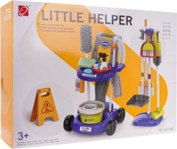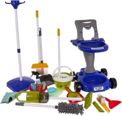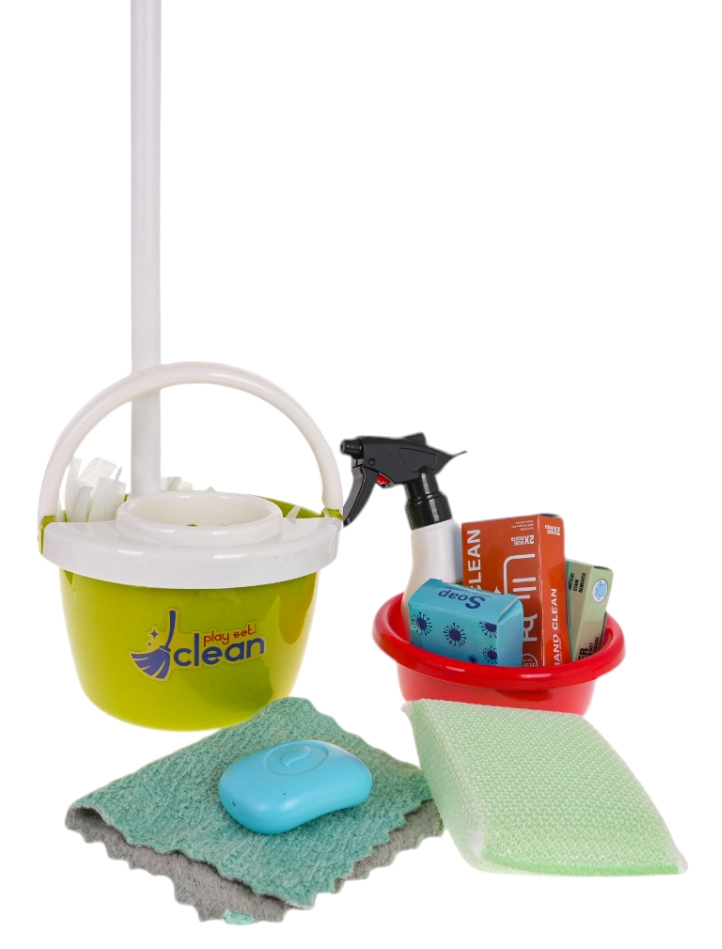 Kopā 29 detaļas, tostarp mops, slota, sūklīši, smidzināmais flakons, spainītis un citi noderīgi piederumi reālistiskai spēlei.