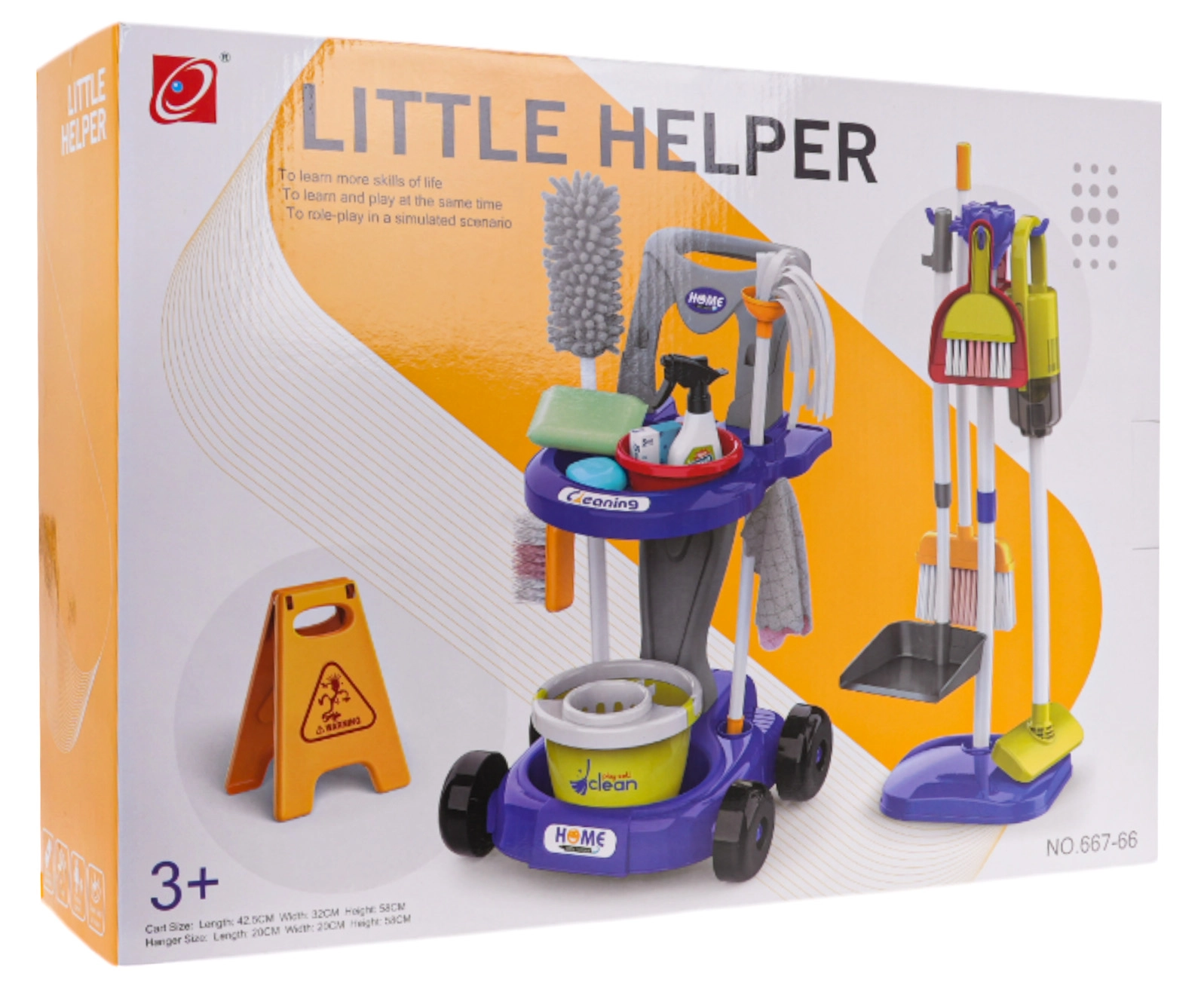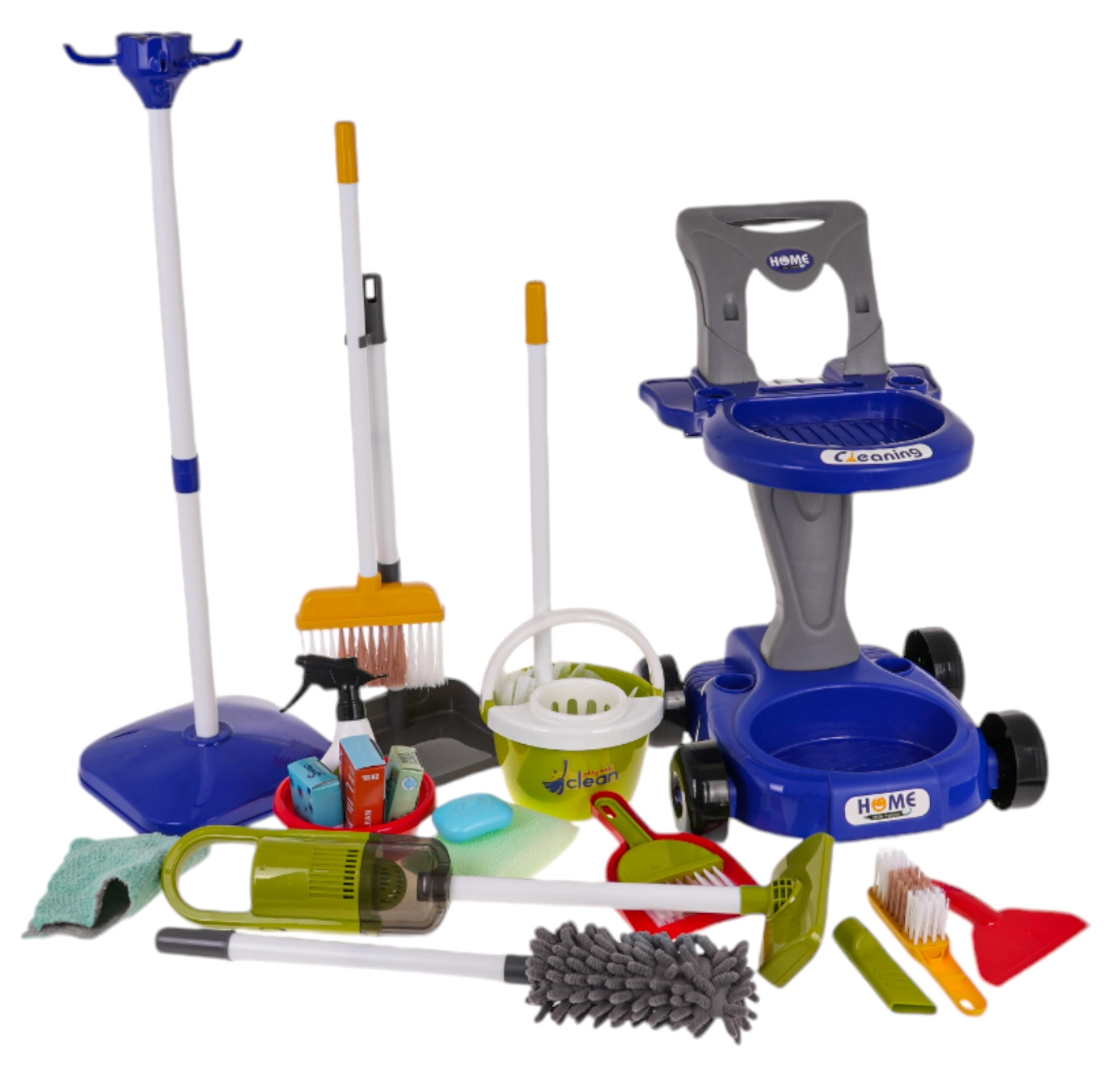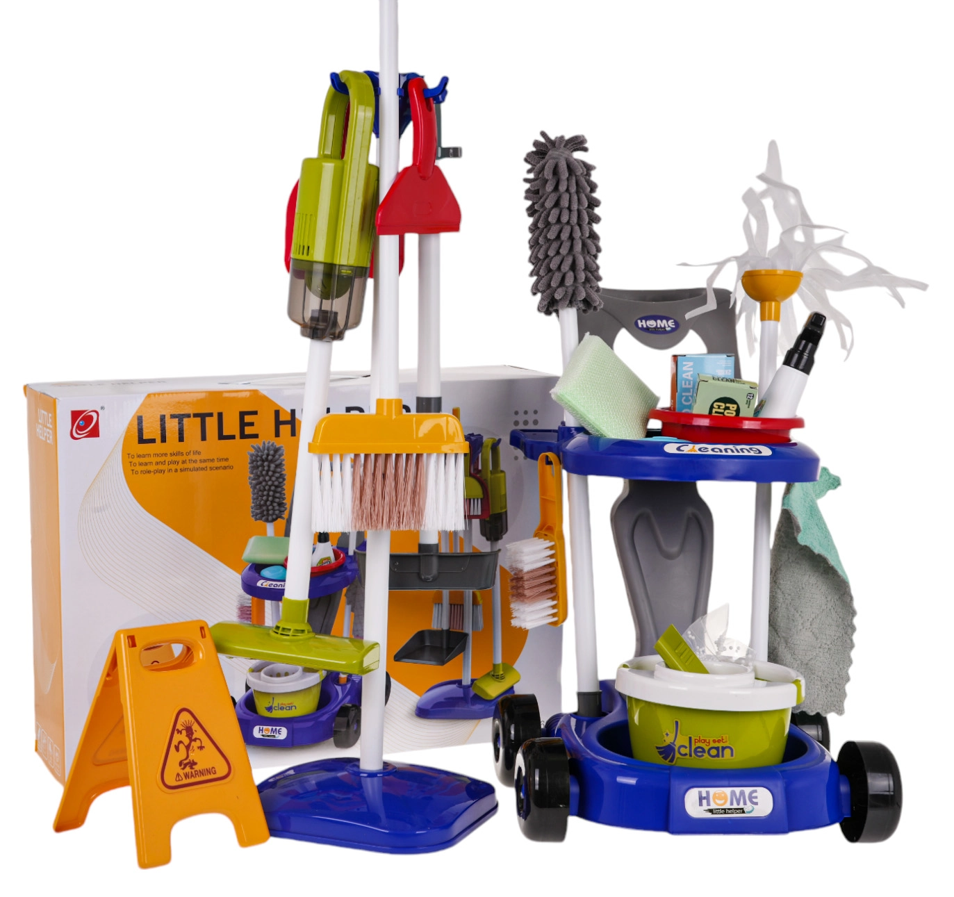 Atklājiet uzkopšanas burvību ar mūsu bagātīgi aprīkoto uzkopšanas komplektu bērniem no 3 gadu vecuma. Izgatavots no augstas kvalitātes plastmasas košās krāsās, šis komplekts ietver izturīgu uzkopšanas ratiņgrozu, funkcionālu putekļsūcēju un daudz citus piederumus, kas iedvesmos bērnus radošai spēlei un mācībām.