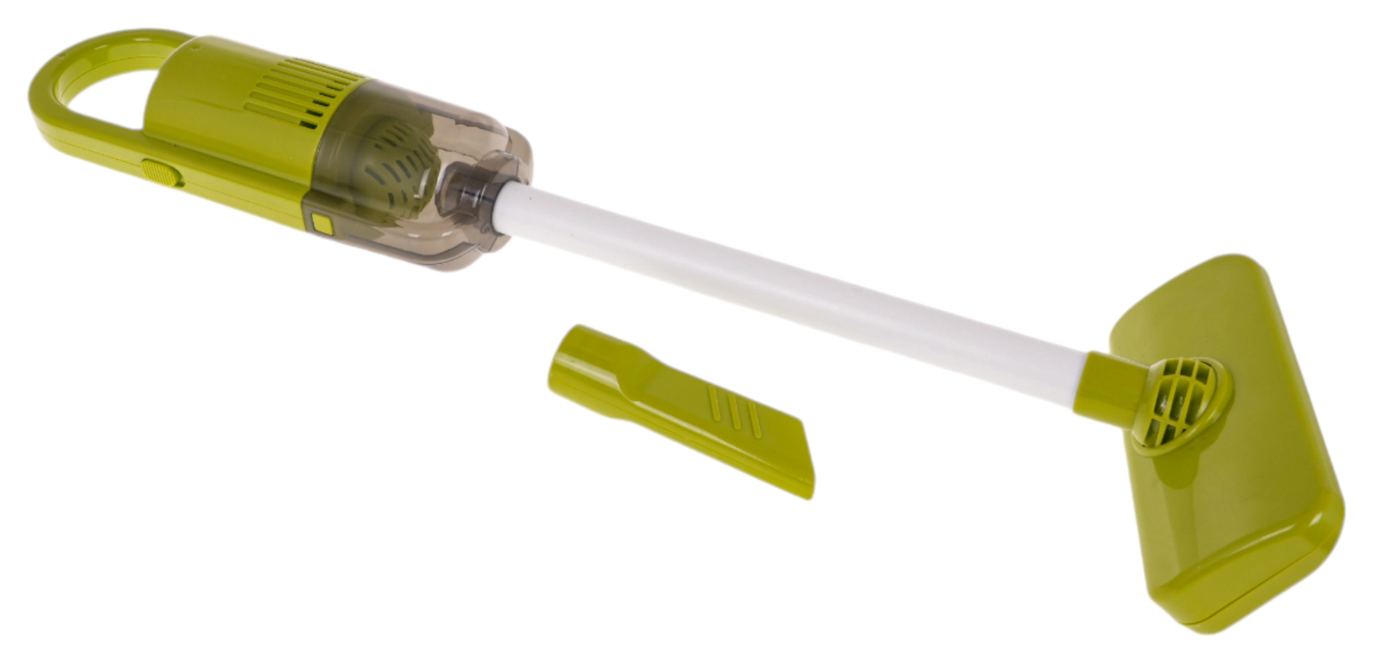 Darbīgs, ar baterijām darbināms putekļsūcējs, kas savāc sīkas daļiņas, sniedz bērniem prieku uzkopšanas laikā.