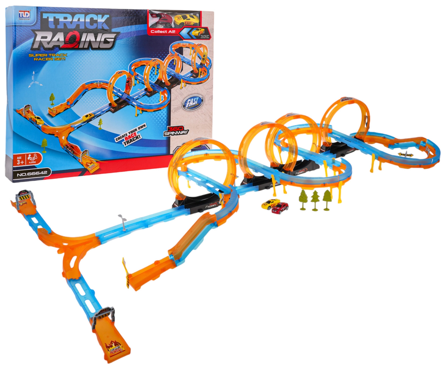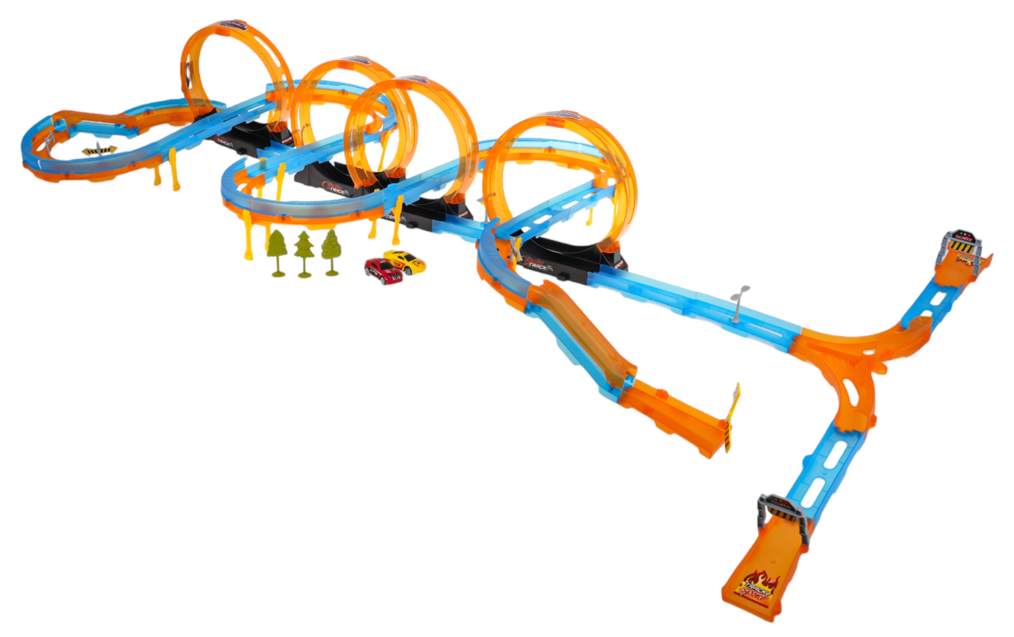 Dodies ātruma braucienā ar mega sacīkšu trasi, kas sniedz neaizmirstamu izklaidi! Trase izgatavota no augstas kvalitātes plastmasas spilgtās krāsās un ietver 74 detaļas montāžai pēc savas fantāzijas.