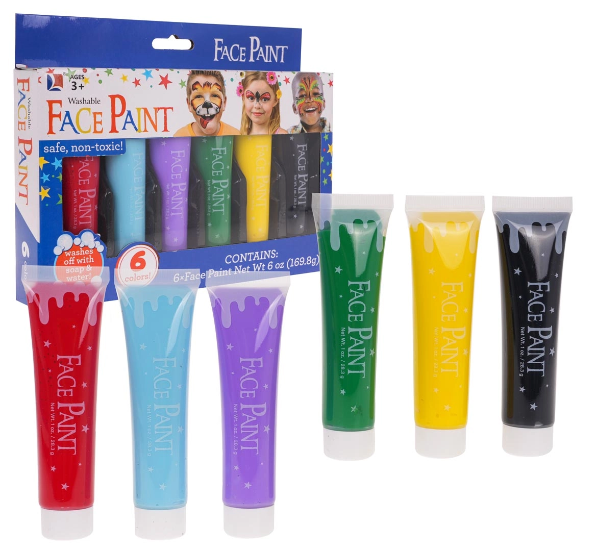 Ieprieciniet jebkuru ballīti vai karnevālu ar praktisku sejas krāsošanas komplektu bērniem no 3 gadu vecuma. Krāsas ir netoksiskas, drošas bērna ādai un viegli nomazgājamas ar ūdeni un ziepēm. Iepakojumā atradīsiet 6 spilgtas krāsas bezgalīgai radošai izklaidei.