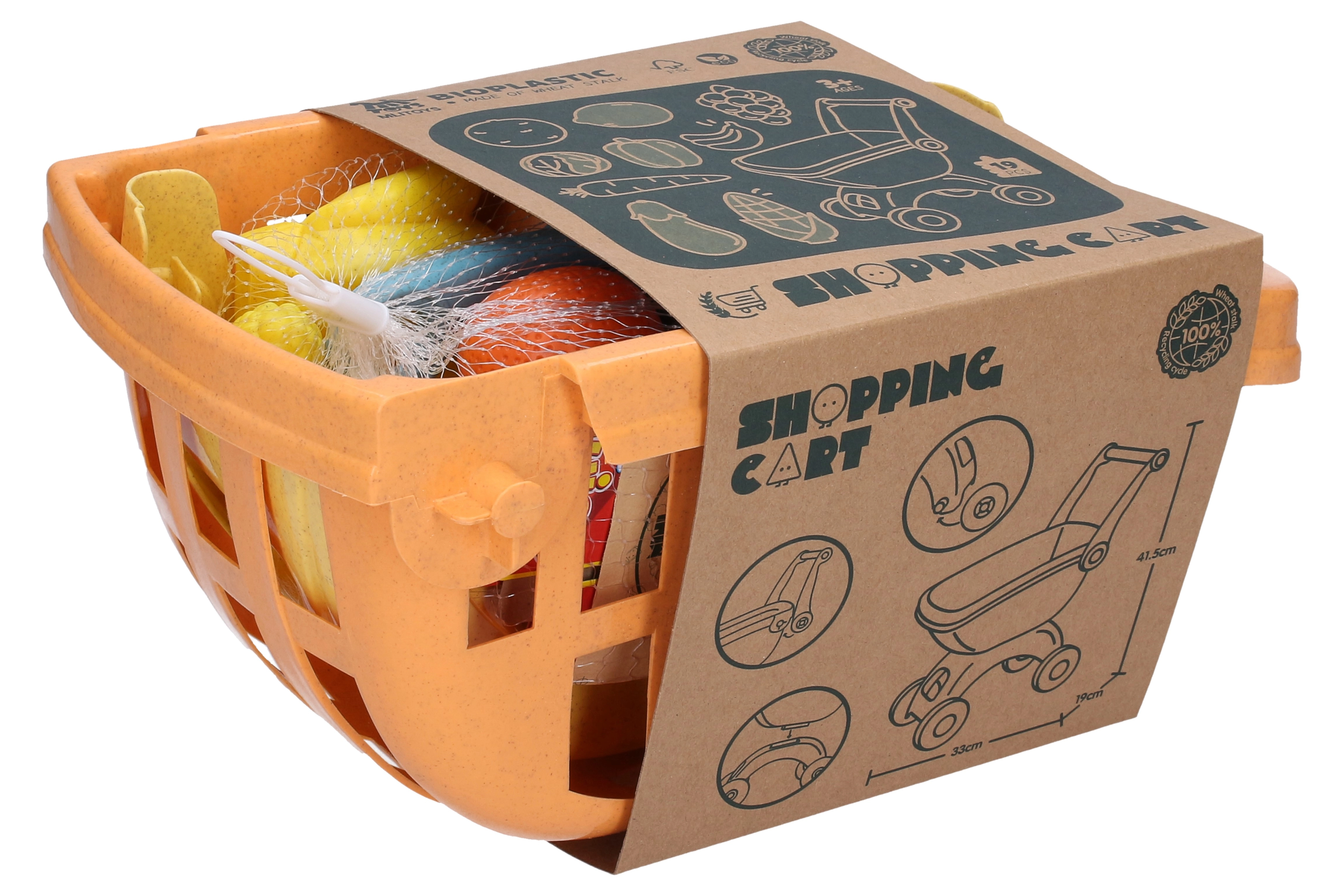 Bērnu iepirkumu ratiņi ar pārtiku Bioplastic ir lieliska izvēle radošai veikala spēlei. Pateicoties izturīgajai plastmasas konstrukcijai, ērtajam rokturim un gludajiem riteņiem, tos ir viegli vadīt, un tie ir piemēroti pirmsskolas vecuma bērniem. Krāsainie pārtikas produkti iedvesmo atdarināt reālas situācijas un attīsta sociālās prasmes.