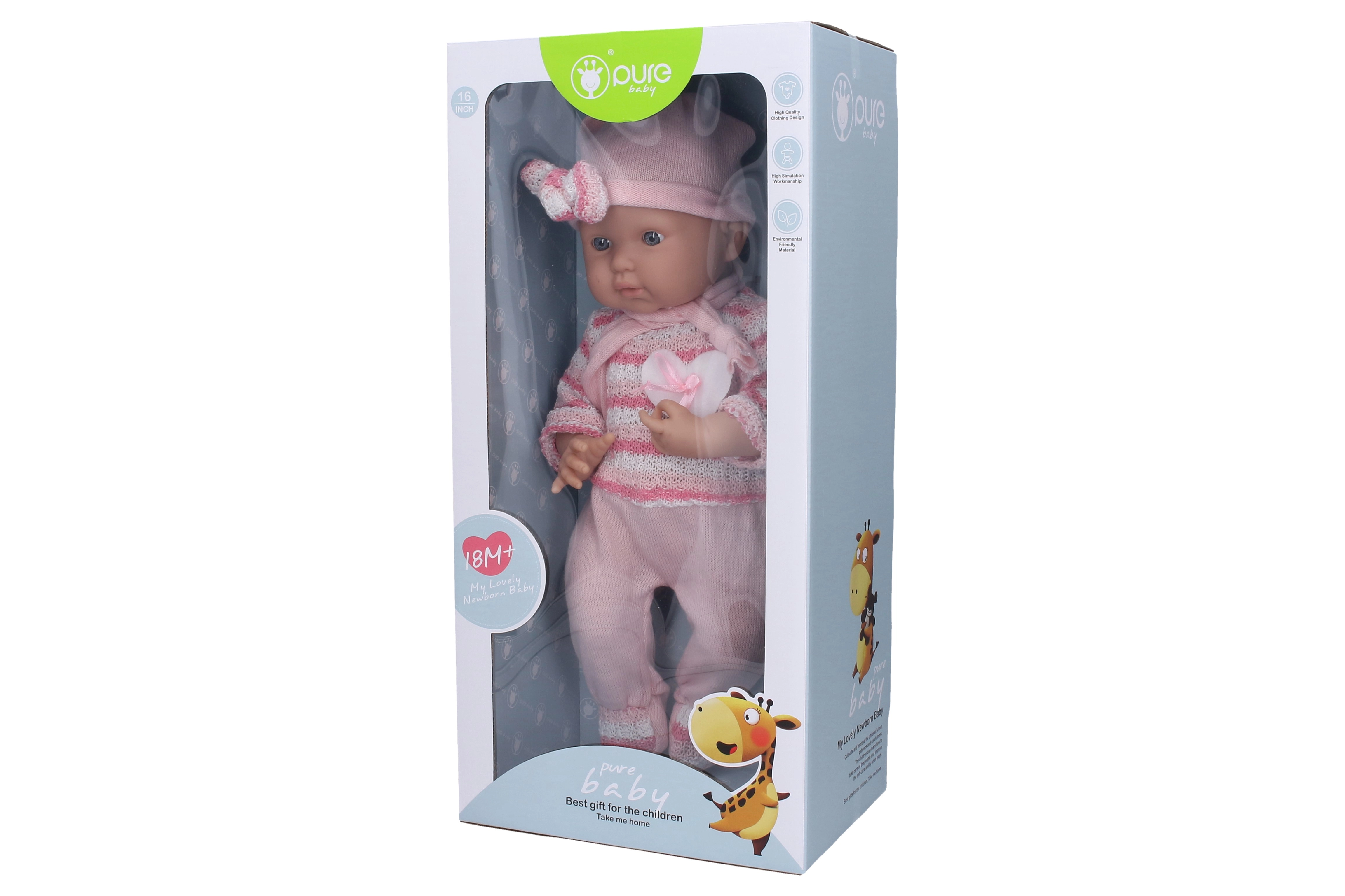 Mīlīgs mazuļuks mīkstā kombinezonā, 40 cm izmērā, ideāli piemērots katrai mazajai māmiņai. Perfekta rotaļlieta bērna iztēles un prasmju attīstībai.