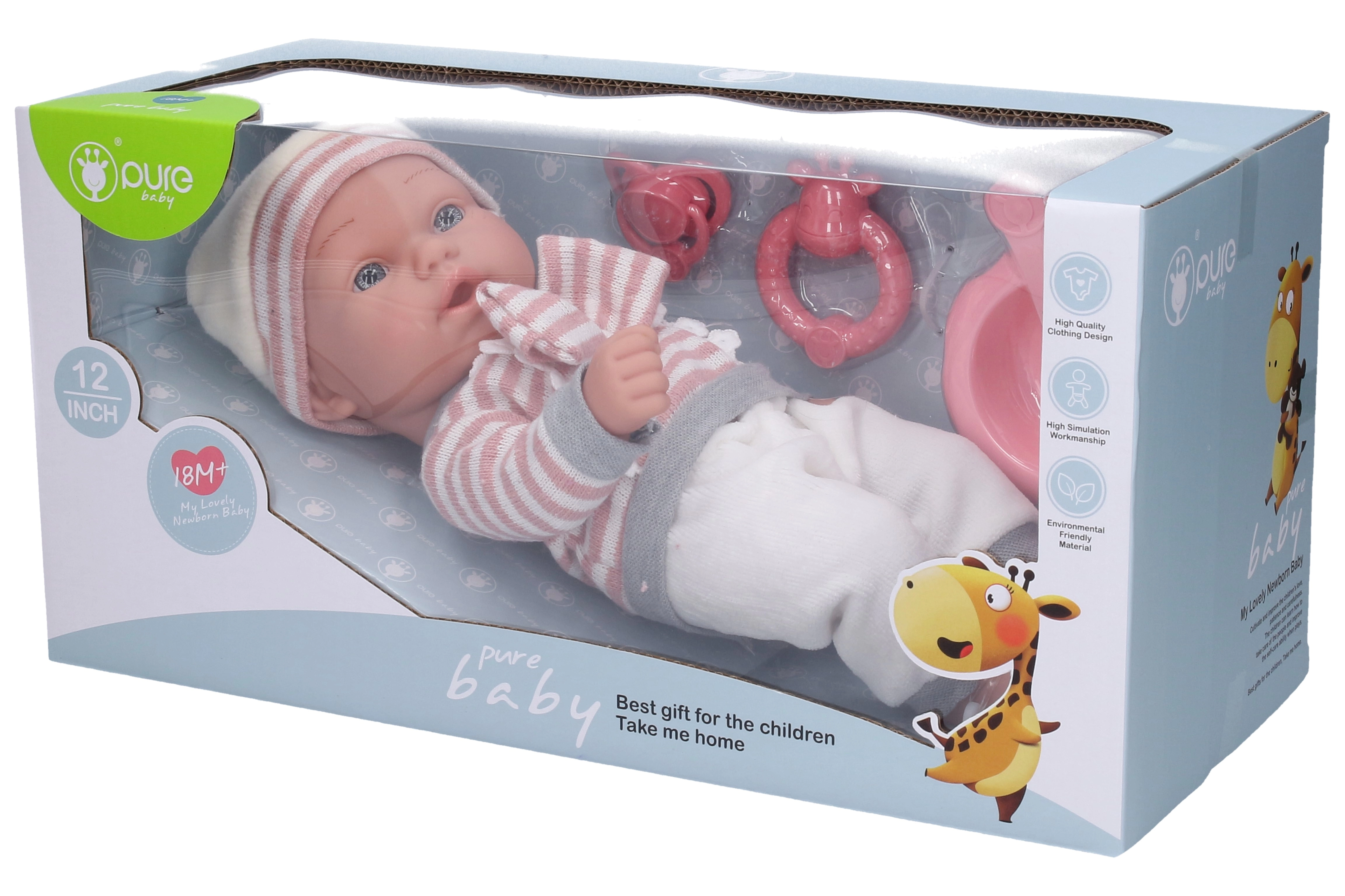 Šis mīlīgais 30 cm mazulis ir ideāls ikvienam bērnam, kurš mīl spēlēties ar realistiskām lellēm. Ar šo komplektu varat sagaidīt stundām ilgu jautrību, pilnu rūpju un iztēles, pateicoties iekļautajiem piederumiem, piemēram, knupītis, grabulis un bļodiņa ar piederumiem.