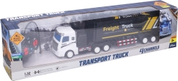Izklaidējošs tālvadāms kravas auto 41 cm garumā elegantā melnā krāsā. Piedāvā 27 MHz frekvenci, gaismas efektus un komplektā iekļautu 3,7 V akumulatoru ar USB kabeli; 2× AA pults baterijas nav iekļautas.