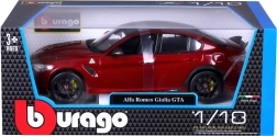 Atklājiet augstvērtīgu metāla modeli ALFA ROMEO GIULIA GTA pievilcīgā sarkanā metālikā. BBURAGO 1:18 Plus sērija piedāvā reālistiskas proporcijas, asus virsbūves sīkumus un sportisku noskaņu automobilim, kas slavens ar vieglumu, veiktspēju un precīzu vadāmību. Modeli izceļ aerodinamiskas līnijas, dzelteni bremžu suporti un izteikts aizmugures spoileris.
