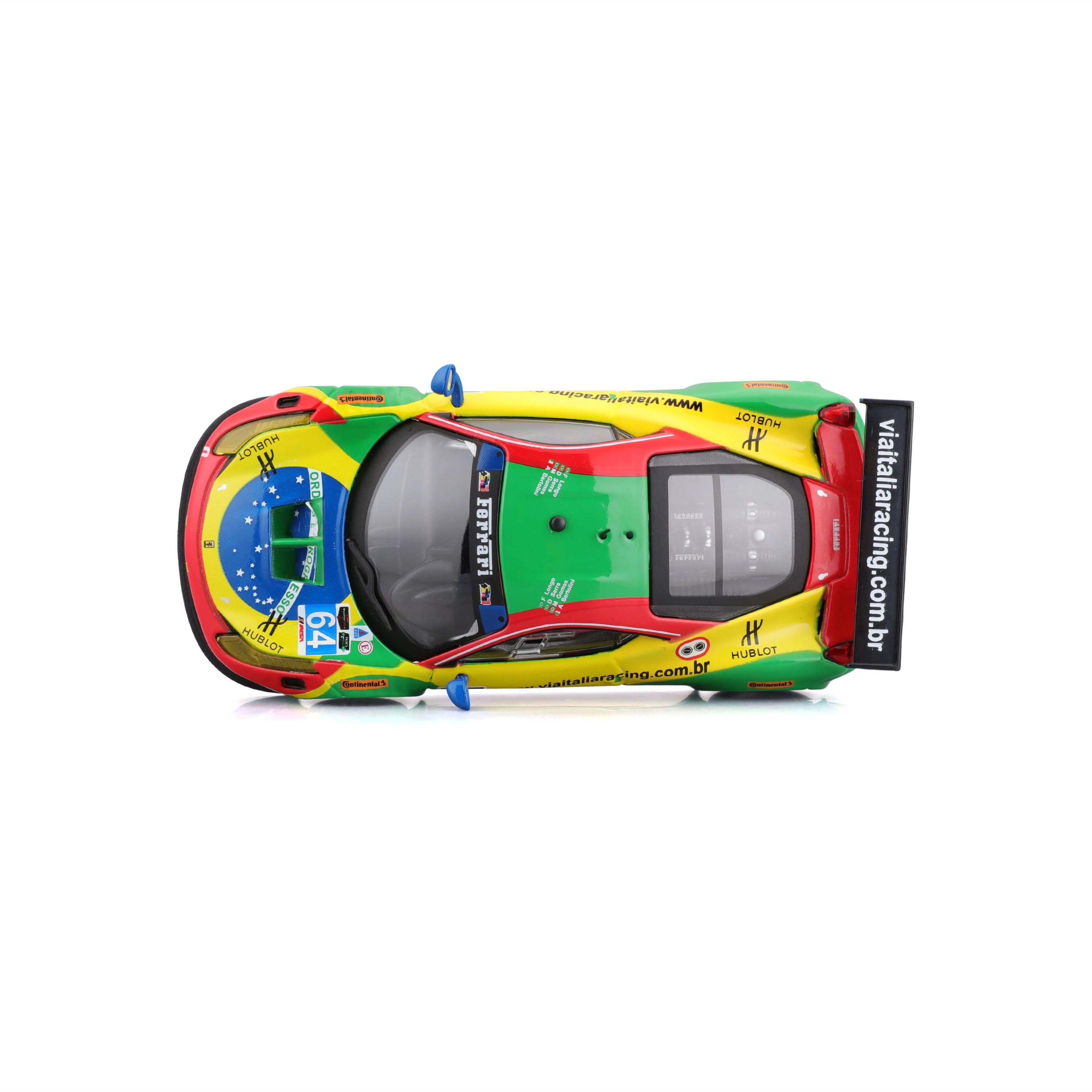 Izturīga metāla virsbūve ar plastmasas detaļām, ripojoši riteņi un rūpīgi izstrādāti eksterjera elementi (spoguļi, spārns, difuzors) izceļ reālistisku izskatu. Modelis tiek piegādāts oriģinālā Ferrari Racing iepakojumā, tāpēc tas ir gatavs kā stilīga dāvana autosporta cienītājiem.