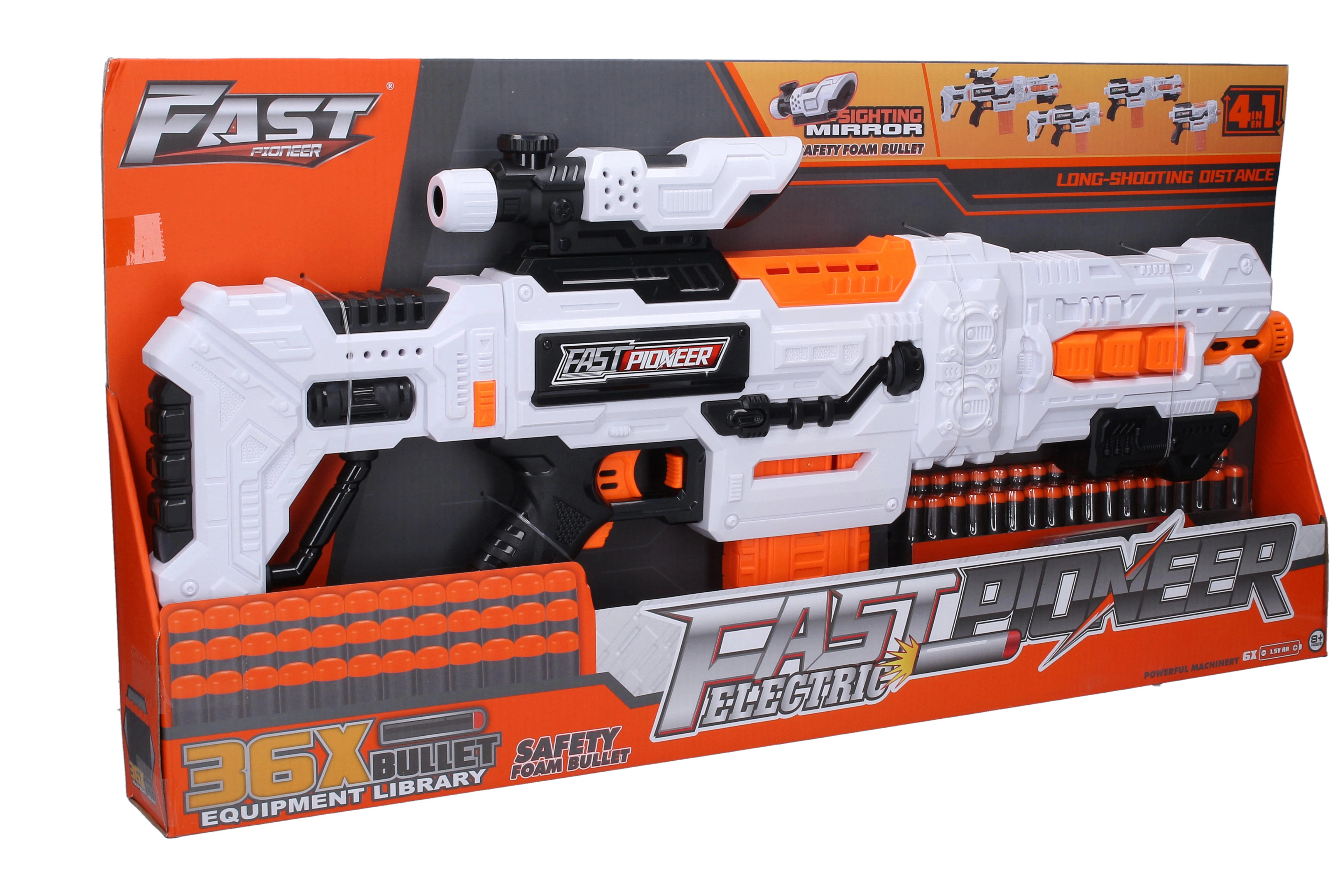 Atklājiet universālu putu rotaļu ieroci, ko varat pielāgot savam spēles stilam. Šis elektriskais ložmetējs piedāvā 4‑in‑1 modulāro konstrukciju, tāpēc to var viegli izjaukt un salikt četrās versijās. Ar 36 mīkstiem putu lodiņiem varēsiet baudīt garas, aizraujošas cīņas ar draugiem un vienlaikus drošu izklaidi.