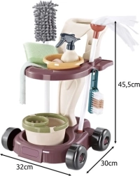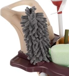 Četri plati riteņi, divi ietilpīgi plaukti un praktiski āķi un atveres piederumu glabāšanai. Bērni viegli pārvadās spaini, mopu, tīrīšanas gumiju un smidzinātāju, un viss būs pārskatāmi vienuviet.