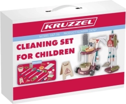 Šis lielais bērnu uzkopšanas komplekts KRUZZEL 18 vienā piedāvā visu, kas mazajiem palīgiem vajadzīgs īsta uzkopšanas procesa atdarināšanai. Komplektā ir stingri ratiņi ar diviem plauktiem un āķiem, atsevišķs statīvs piederumiem un rotaļu vertikāls putekļsūcējs uz 3× AA baterijām, kas iesūc vieglas bumbiņas un ir ar caurspīdīgu tvertni. Pateicoties kvalitatīviem PP, HIPS, ABS un citiem materiāliem, komplekts ir vienlaikus viegls, izturīgs un drošs bērnu spēlēm.