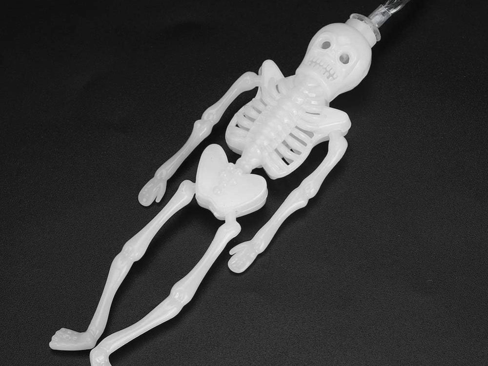 Katrā no 10 skeletiem ir sava LED diode, kas izstaro vienmērīgu, patīkami spocīgu gaismu.