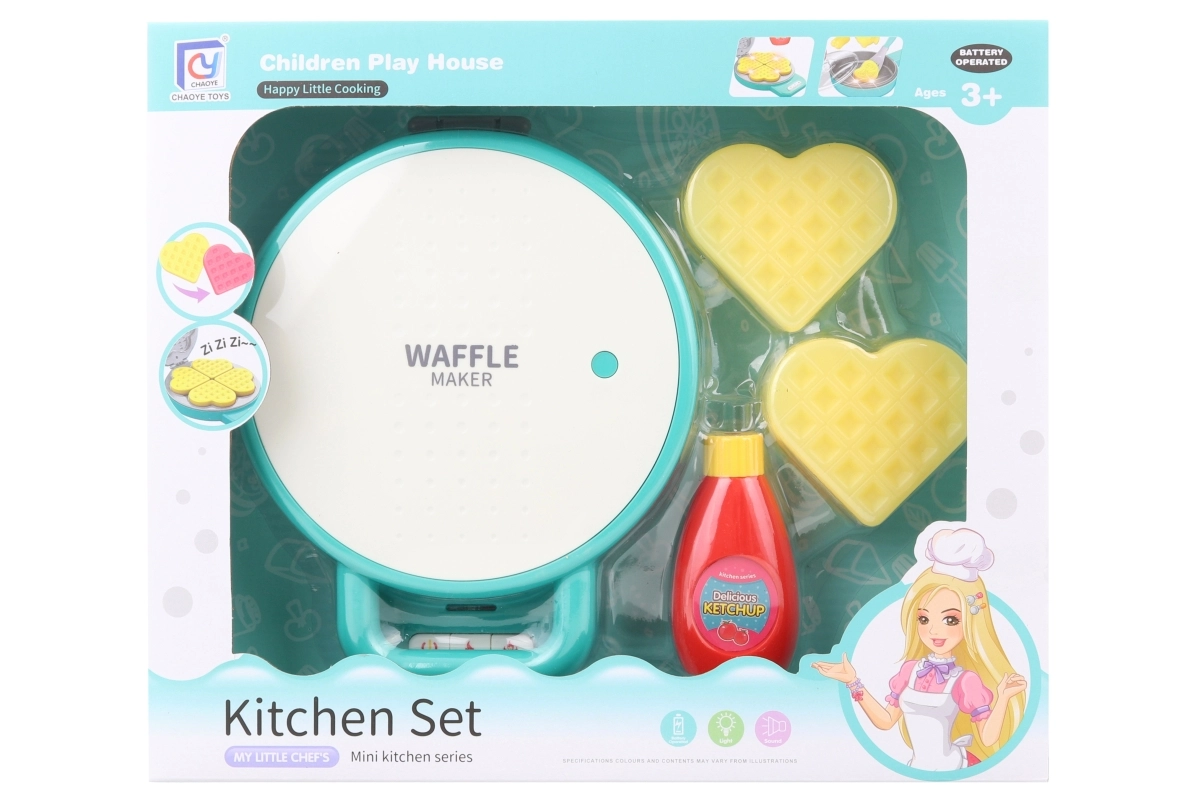 Spēļu plastmasas vafeļu panna iepriecinās visus mazos pavārus. Ievieto vafeles, kas maina krāsu kā cepšanas laikā, bet izņemot atgriežas sākotnējā krāsā. Vafeļu panna turklāt izdod izklaidējošas skaņas un darbojas ar 3× AA baterijām (nav iekļautas). Piemērota bērniem no 3 gadu vecuma.