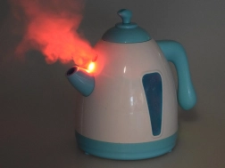 Tējkanna ir aprīkota ar pogu, kas iedarbina ūdens vārīšanās simulāciju ar reālistisku skaņu un sarkano LED indikāciju.