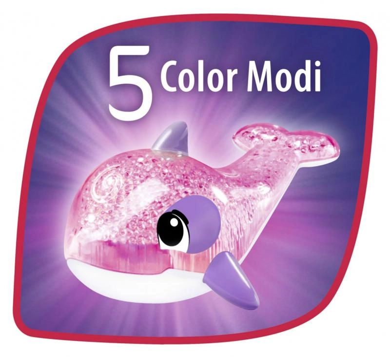 Šis mirdzošais delfīns ir lieliska rotaļlieta mazajiem bērniem, kas sniedz daudz jautrības, pateicoties savām varavīksnes krāsām un gaismojošajiem efektiem.