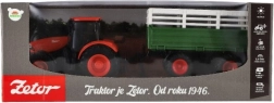 Sarkano ZETOR dizaina traktoru ar zaļo piekabi var viegli atvienot dažādiem saimniecības darbiem un vēl aizraujošākai spēlei.