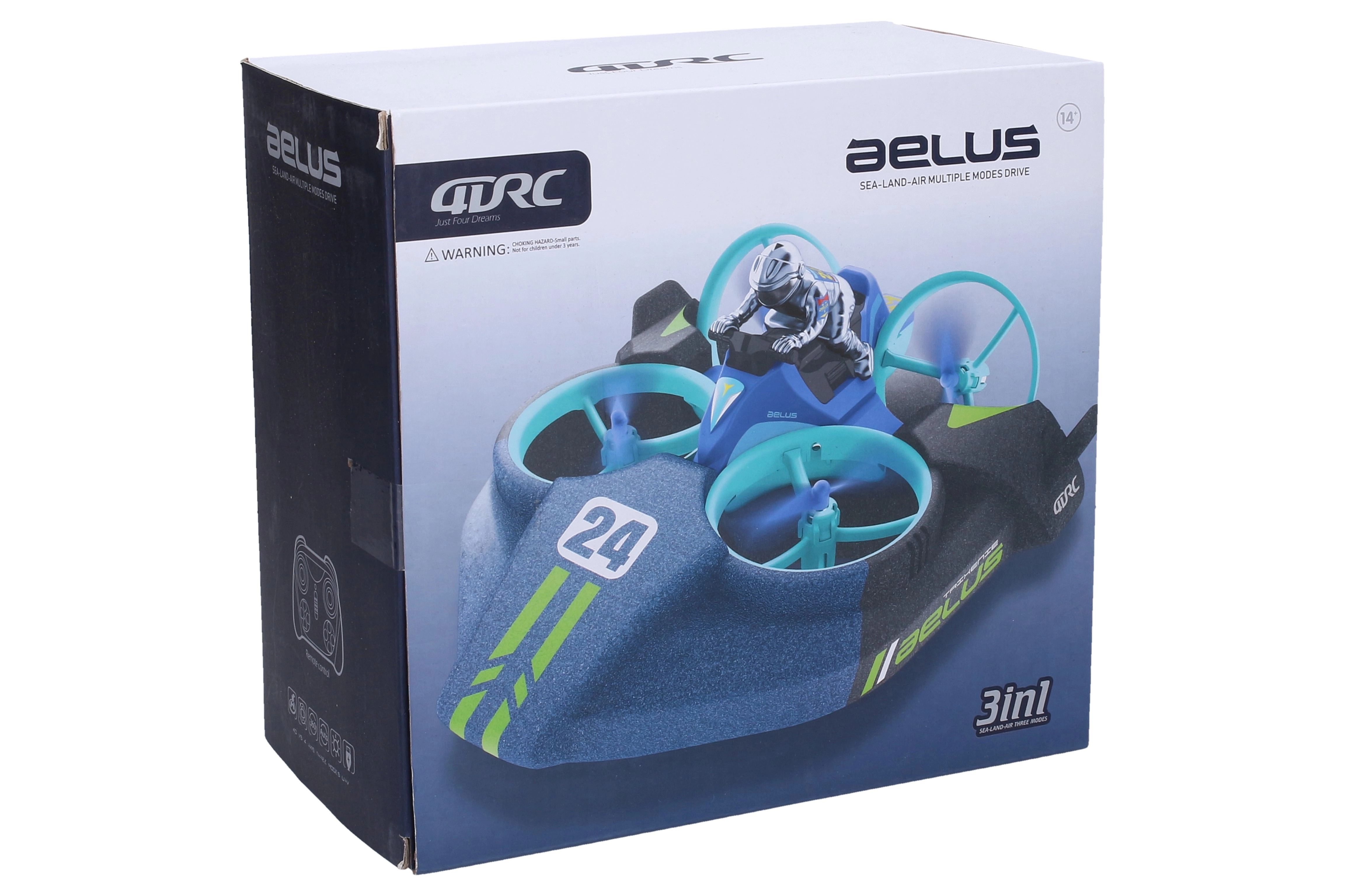 Universālais drons AELUS 3-in-1 sniedz izklaidi uz sauszemes, ūdenī un gaisā. Tas piedāvā 3 braukšanas un lidošanas režīmus, vienkāršu tālvadību un iecienītas funkcijas, piemēram, 360° apgriezienu un atgriešanos sākuma punktā. Pateicoties kompaktajiem izmēriem 18 × 18 × 9 cm un akumulatora komplektam, tas ir gatavs darbībai dažu mirkļu laikā.