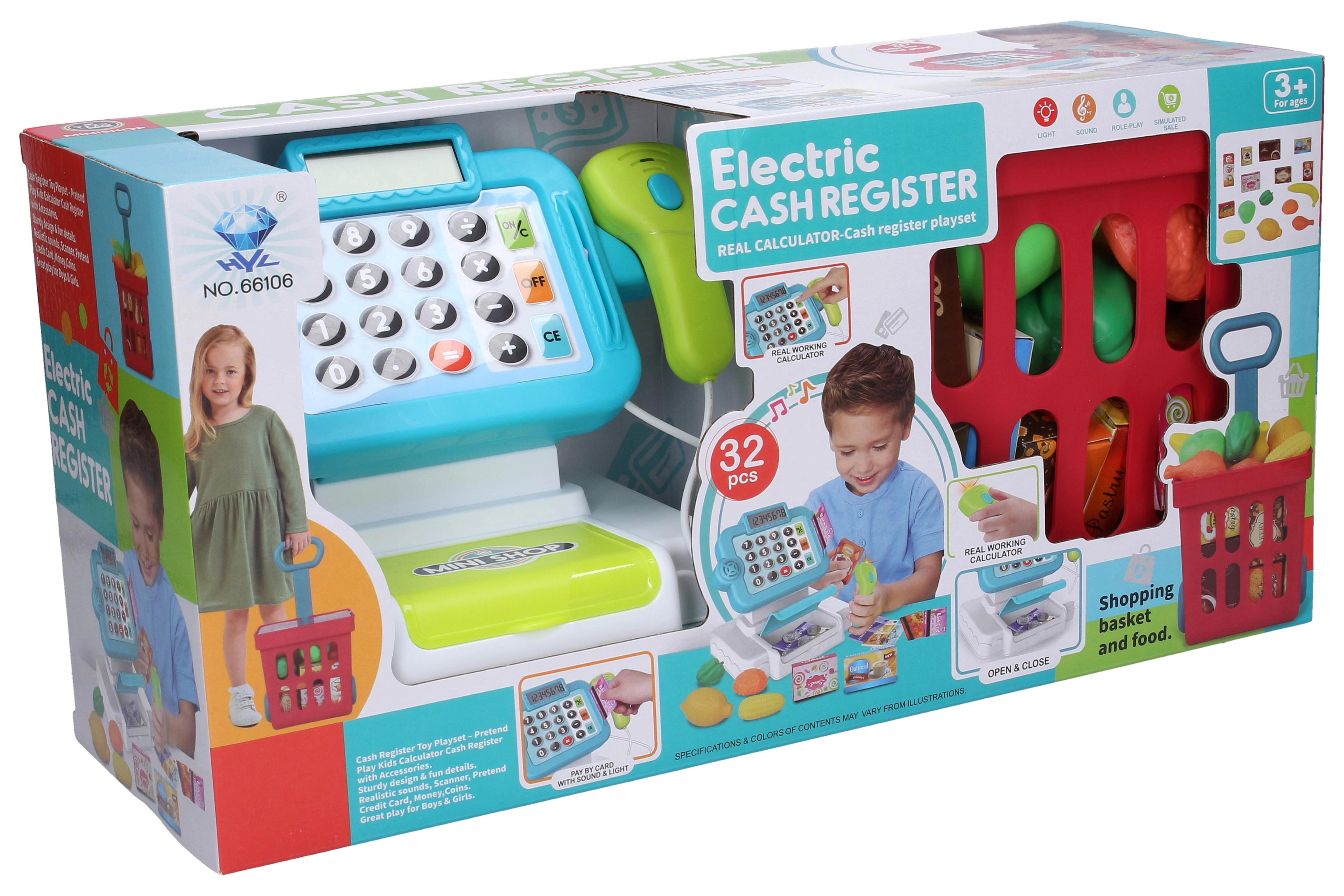 Atbalstiet bērnu iztēli un lomu spēles gan pārdevēja, gan pircēja lomā ar šo pilno kases un iepirkumu ratiņu komplektu. Pateicoties autentiskiem gaismas un skaņas efektiem, rotaļa ir vēl reālistiskāka, un bērni attīsta komunikācijas prasmes, skaitīšanu un sīko motoriku.