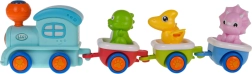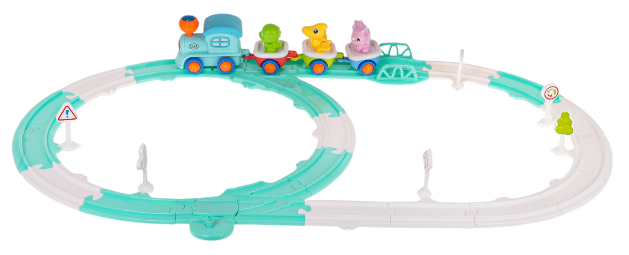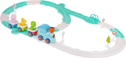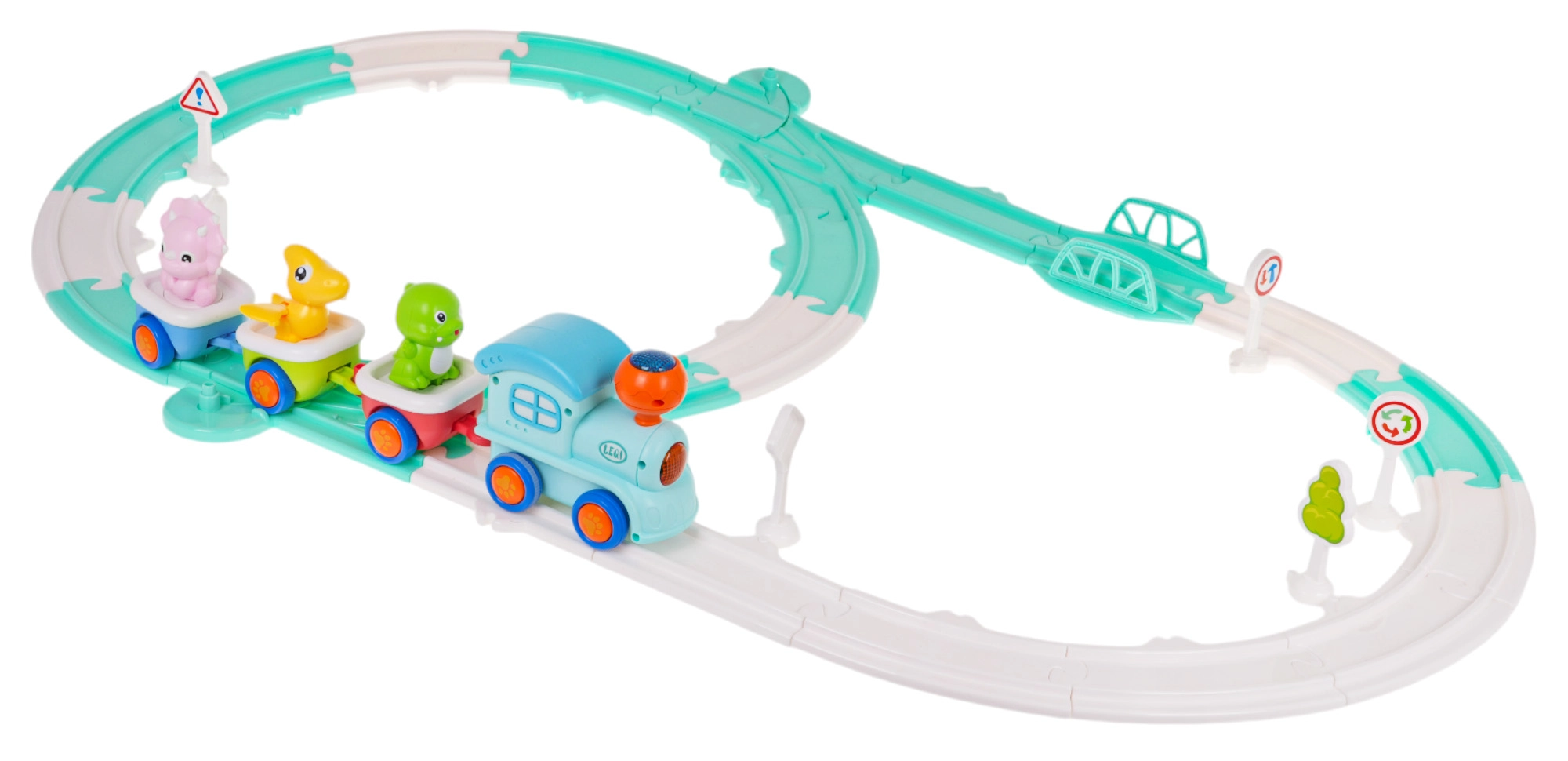 Šī interaktīvā vilciena trase ar dinozauriem ienesīs bērnu istabā daudz prieka. Lokomotīve ar 2× AA baterijām iedegas un atskaņo melodijas, kamēr sastāvs traucas pa krāsainajām sliedēm. Katru no 3 vagoniņiem var viegli atvienot, bet dinozauru figūriņas izņemt patstāvīgai spēlei.