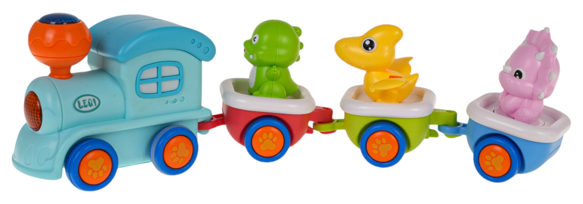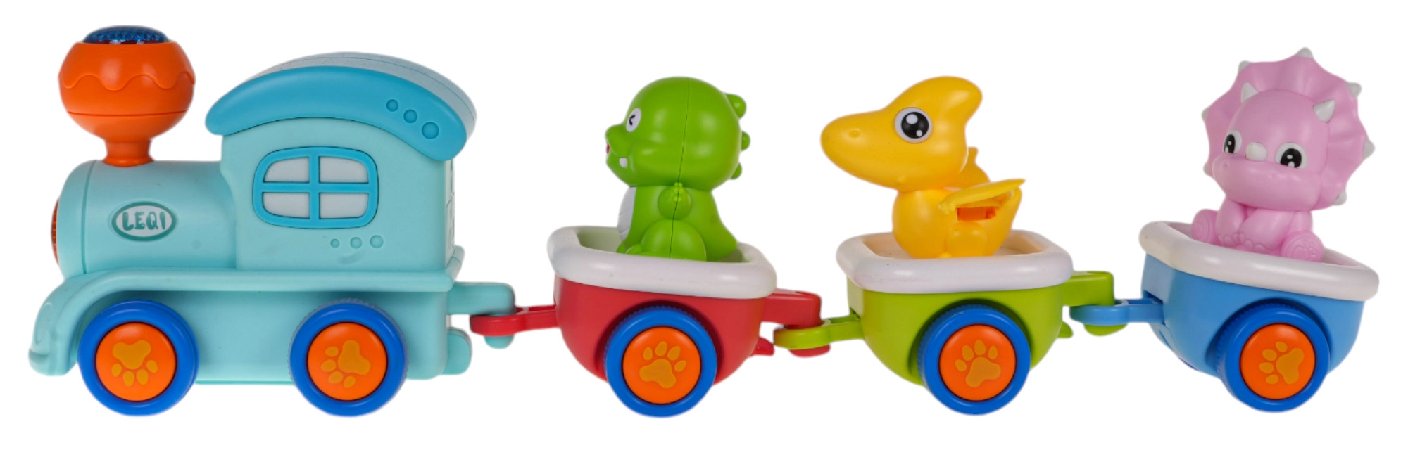 Trīs atvienojami vagoniņi ar izņemamām dinozauru figūriņām veicina radošus stāstus un patstāvīgu spēli.