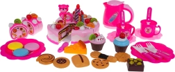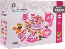 Bērni var pasniegt tēju tasītēs, sadalīt porcijas pa šķīvīšiem un veidot jaunas desertu kombinācijas. Komplekts izgatavots no izturīgas plastmasas košās krāsās un ir piemērots bērniem no 3 gadu vecuma. Lieliski attīsta sadarbību, komunikāciju un motoriskās prasmes.