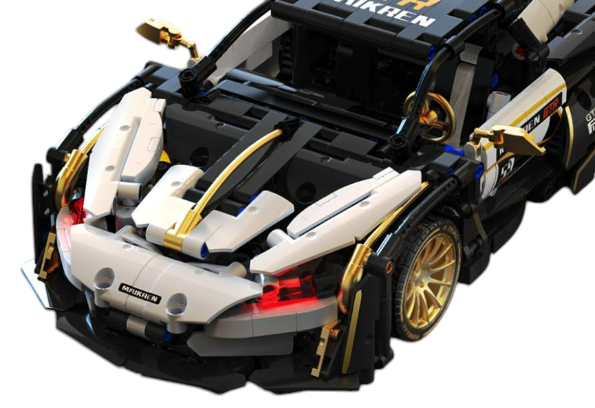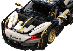 Pārbaudiet savas prasmes ar šo sporta auto būvkomplektu, kurā ir 1242 klucīši jums vai jūsu bērniem no 8 gadu vecuma. Modelis izgatavots no augstas kvalitātes ABS plastmasas un ir uzticama auto replika ar reālistiskiem zeltītiem elementiem, piemēram, spīdīgiem diskiem.