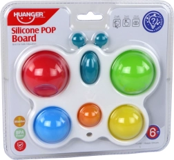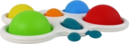 Satur sešus krāsainus silikona burbuļus, kurus var atkārtoti spaidīt maņu stimulēšanai.