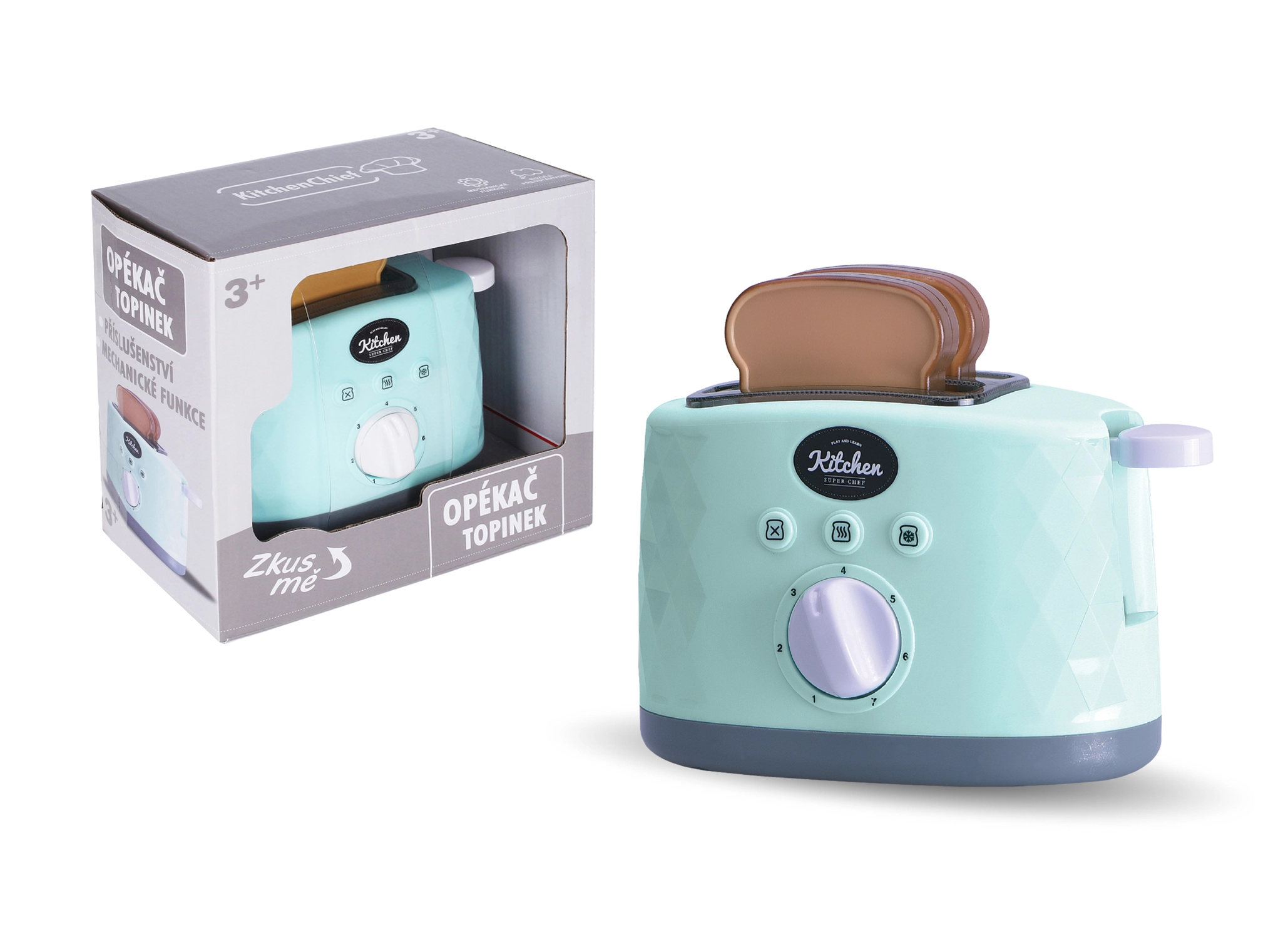 Bērnu tosteris ir lielisks mazajiem palīgiem, kuri vēlas pagatavot brokastis kā pieaugušie. Vadība ir vienkārša – apbrūnināšanu sāk, nospiežot slēdzi labajā pusē, un var izvēlēties temperatūras pakāpi ideālai apbrūnināšanai. Spēli papildina reālistiskas skaņas, kas palielina jautrību un veicina iztēles attīstību.
