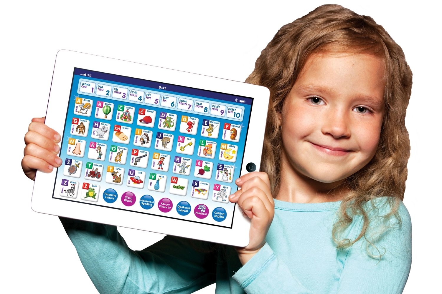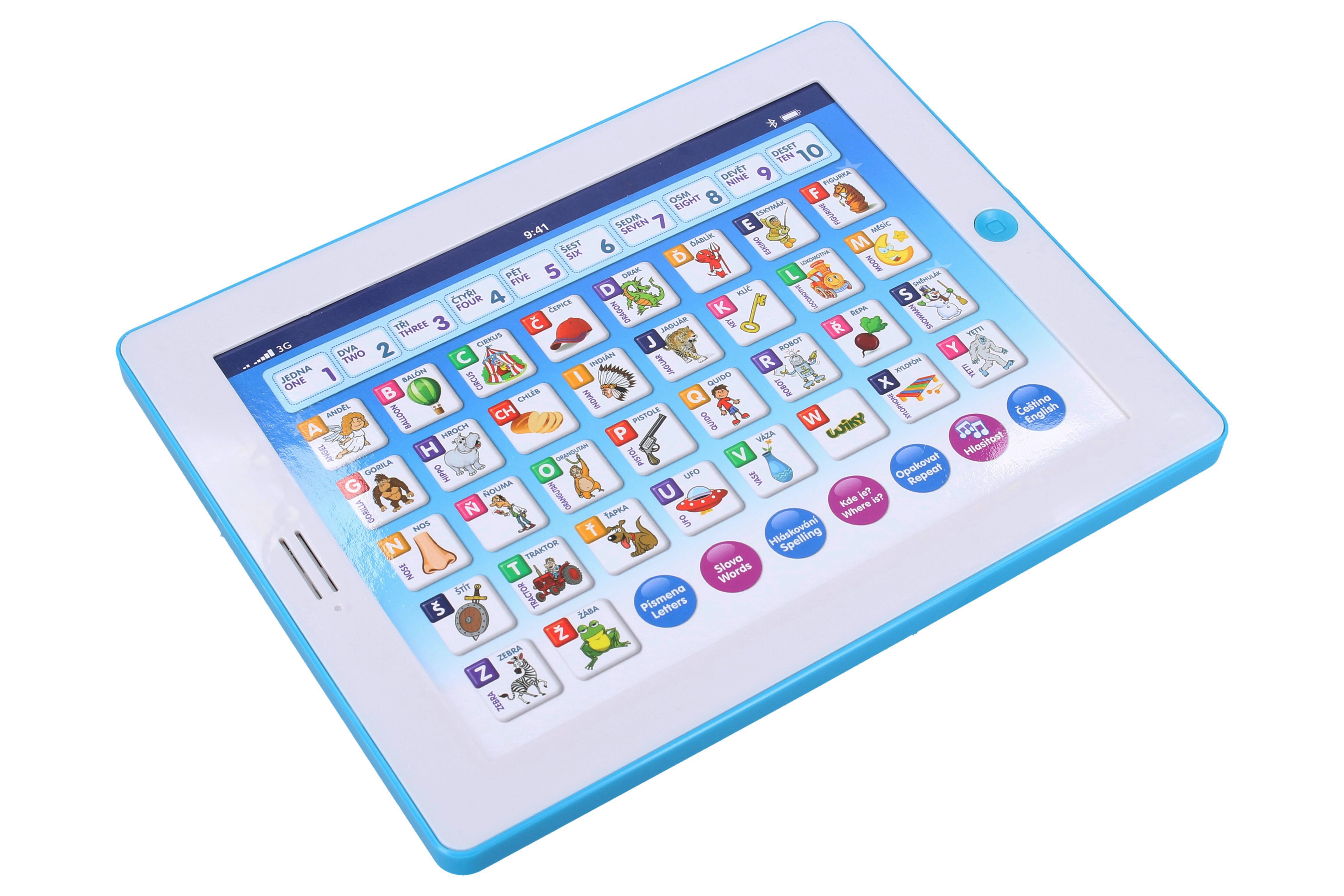 Izklaidējoša un izglītojoša bērnu planšete mazajiem pētniekiem no 3 gadu vecuma. Māca latviešu un angļu valodā, palīdz apgūt skaitīšanu no 1 līdz 10, alfabētu un burtu savienošanu. Satur jautras spēles ar burtiem, vārdiem un cipariem un atskaņo melodijas.