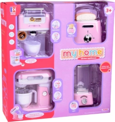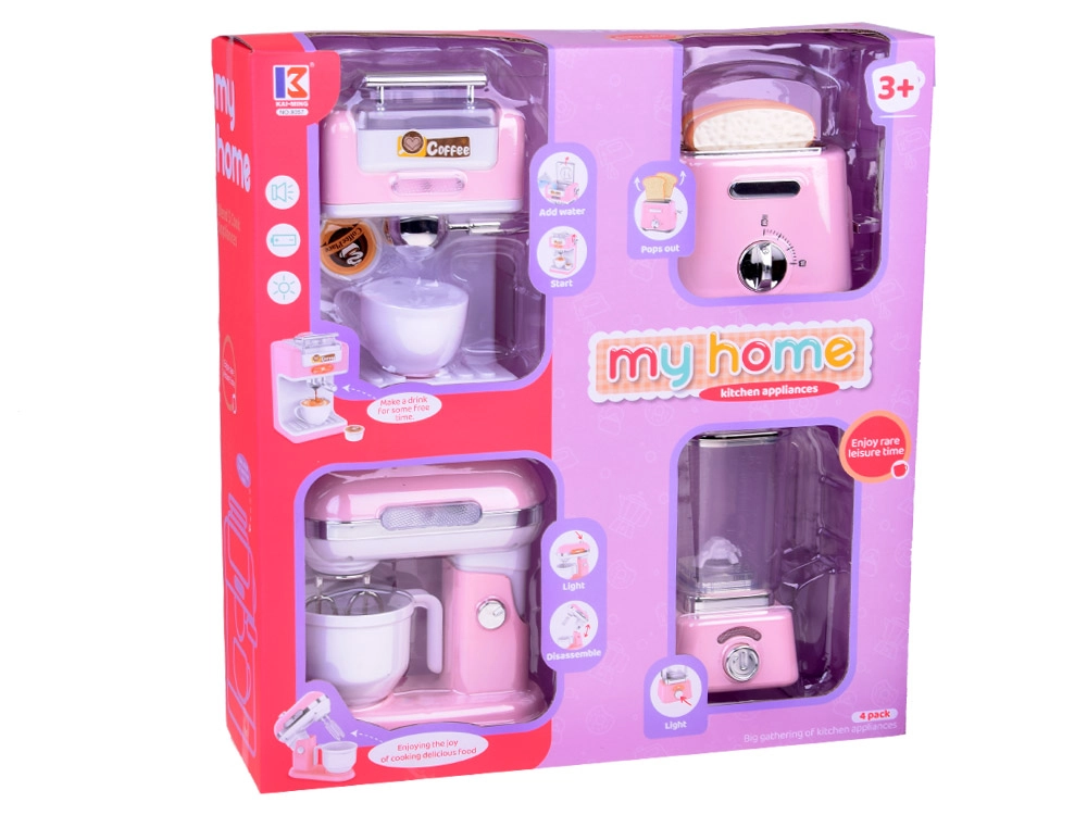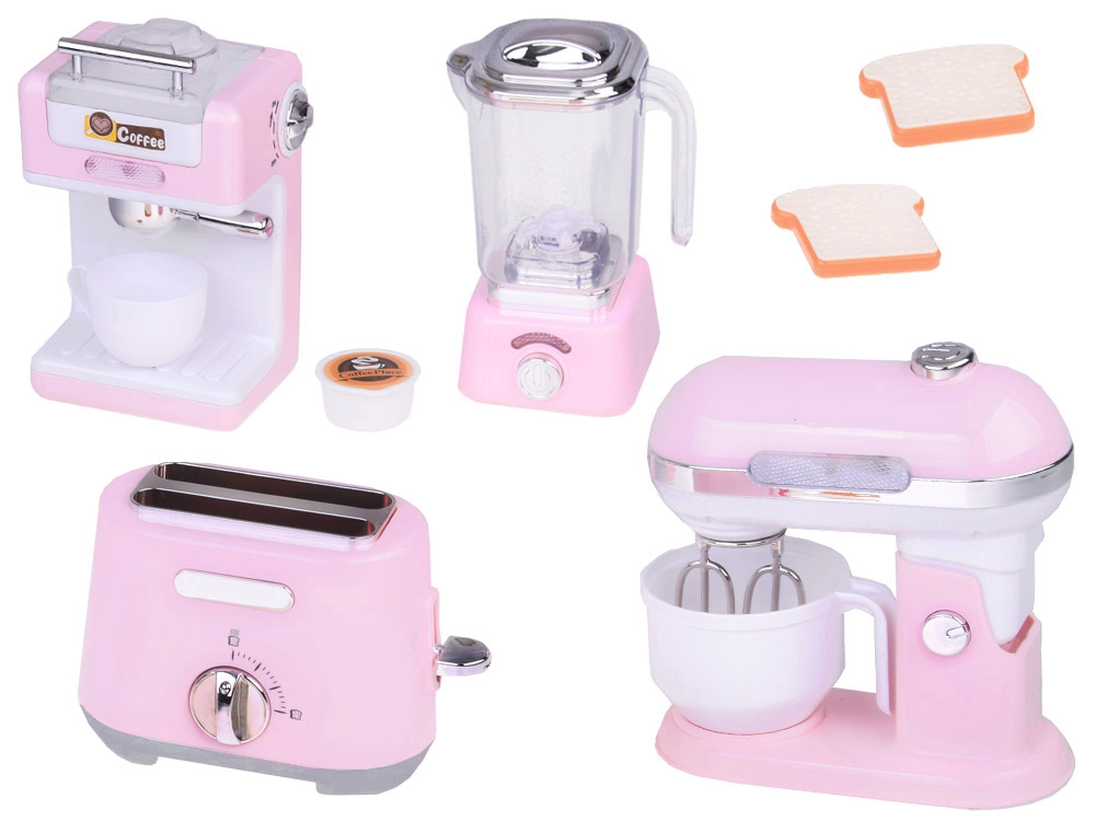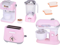 Mazo virtuves ierīču komplekts ienes jūsu bērnu virtuvē eleganci un funkcionalitāti. Izgatavots no kvalitatīvas plastmasas ar detaļām, kas lieliski atdarina īstas ierīces. Maigā rozā krāsa ar baltām un hromētām detaļām piešķir rotaļlietām šarmu un stilu.
