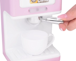 Kafijas automāts ir aprīkots ar rotējošu selektoru, kas ieslēdz skaņas efektu un iedeg sarkanu diodi. Ietver rotējošu krūzi un ērtu uzglabāšanas nodalījumu. Darbojas ar 2 AAA baterijām.