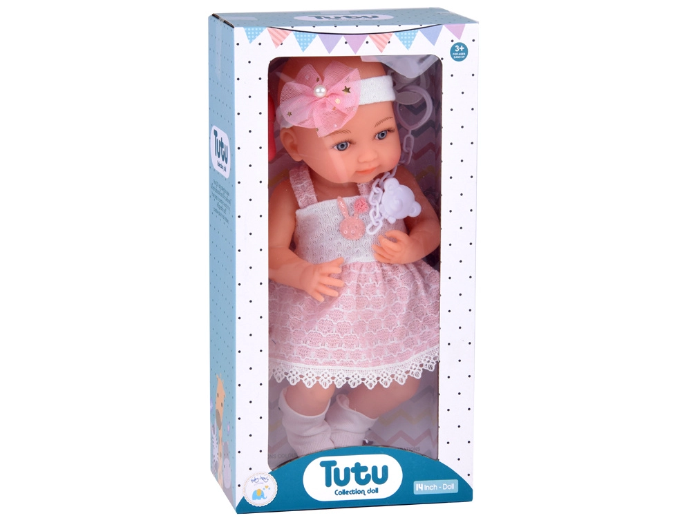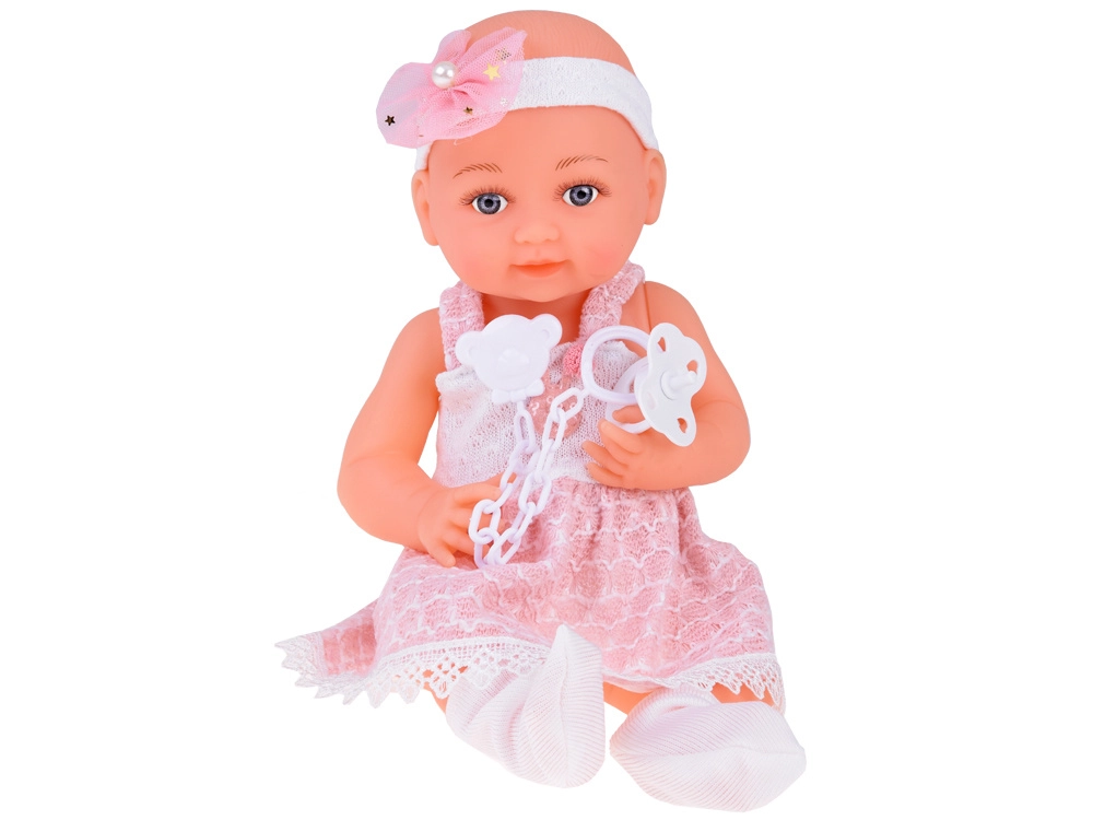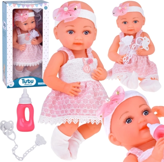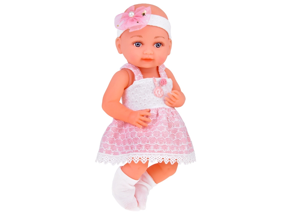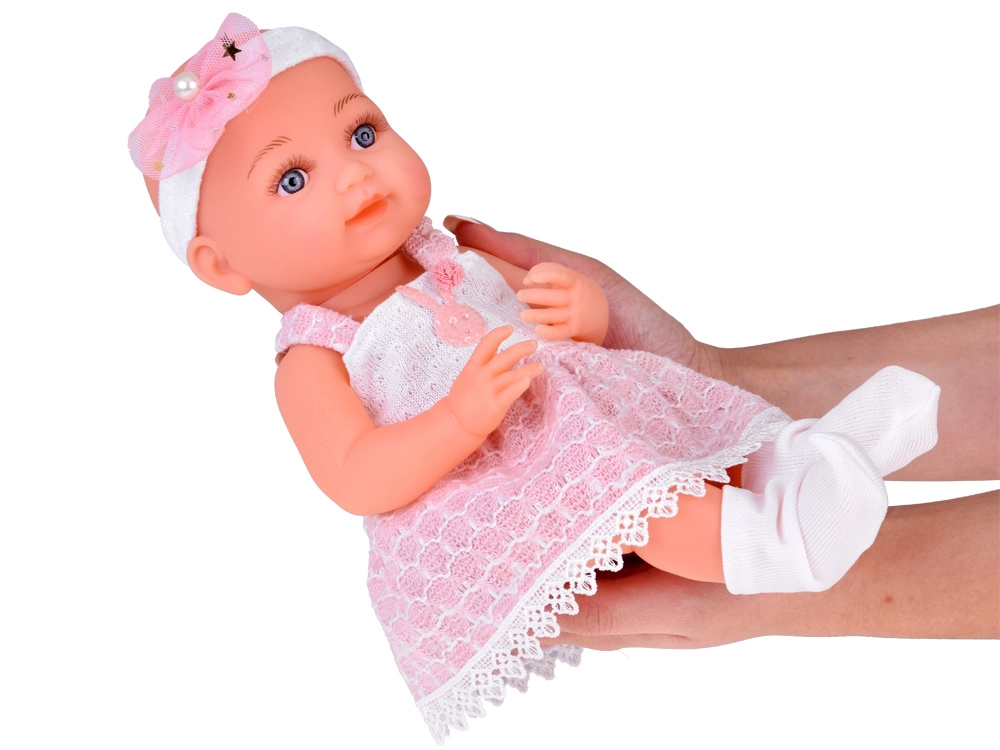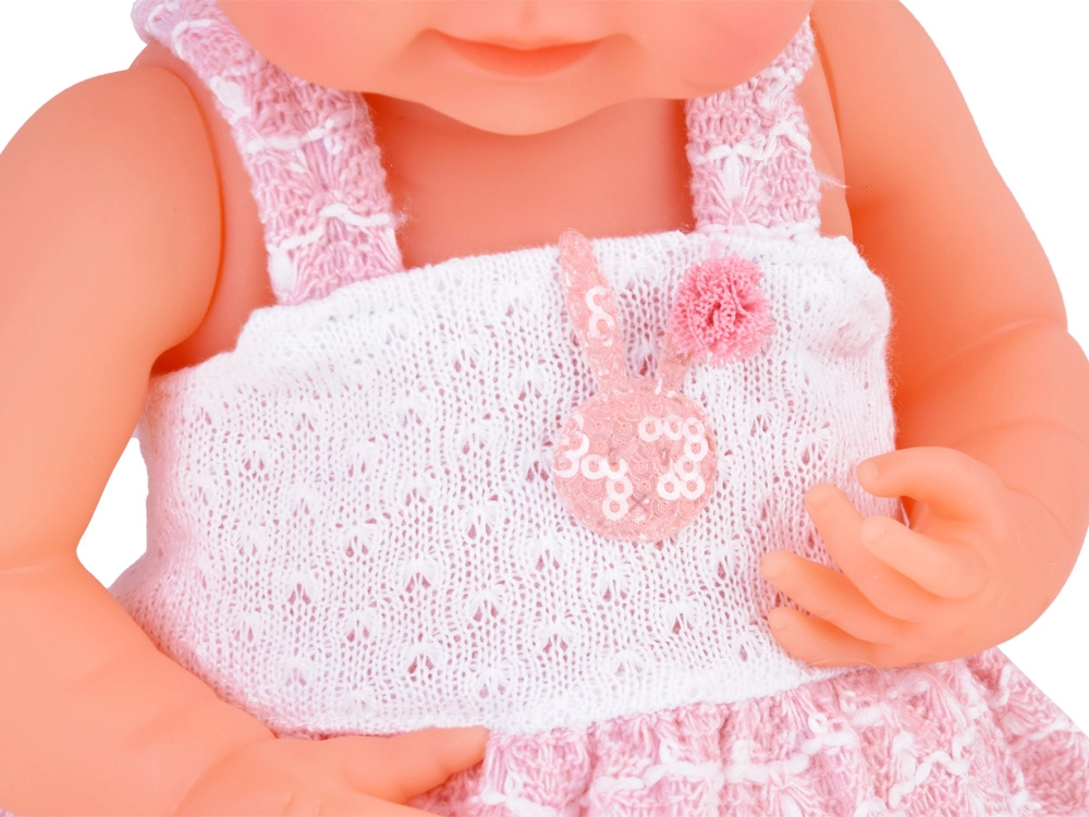 Šī rūpīgi izstrādātā lelle no izturīgas plastmasas un tekstila apbur ar detalizētu sejiņu, maigu izteiksmi un skaistu rozā un baltu tērpu. Zīdaini rotā galvas lenta ar bantīti un pērlīti, bet kājās ir baltas zeķītes. Acis neaizveras, tomēr, pateicoties izteiksmīgajām skropstām, lelle izskatās ļoti dzīva.