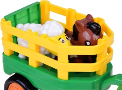 Dzelteni zaļā piekabe atveras ērtai iekraušanai un izkraušanai. Bērni var pārvadāt zirgu un aitu un veidot savus saimniecības stāstus.
