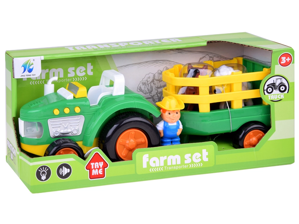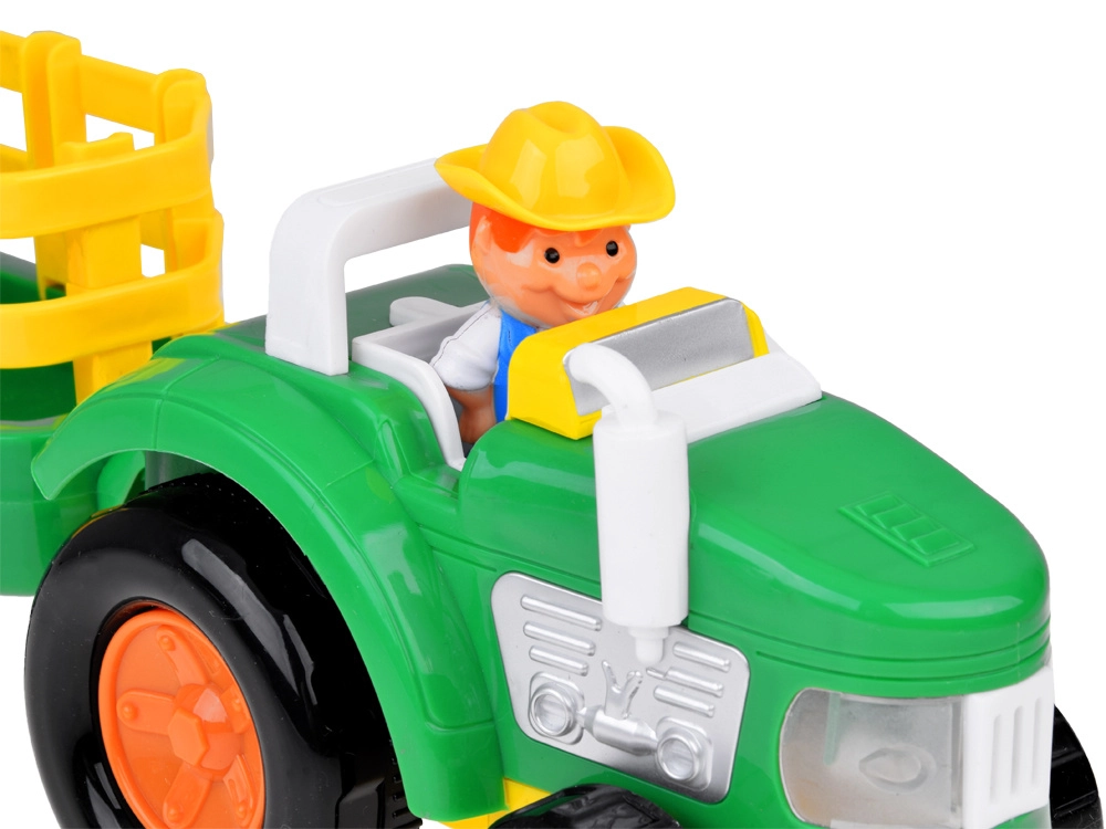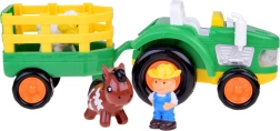 Aizraujošs bērnu traktors ar piekabi un figūriņām, kas piedāvā motora un trauksmes skaņas, spīdošus priekšējos lukturus, atveramu piekabi un kustīgus riteņus. Iekļautas zemnieka, zirga un aitas figūriņas; ideāla rotaļlieta mazajiem lauku saimniecības cienītājiem no 3 gadu vecuma.