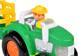 Pārvērtiet istabu mazā saimniecībā ar košu traktoru un noņemamu piekabi. Izturīgs plastmasas izpildījums, ērta satveršana un interaktīvie elementi ar skaņām un gaismām veicina fantāziju, stāstīšanu un sīkās motorikas attīstību.