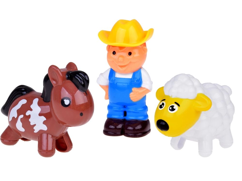 Zemnieks, zirgs un aita paplašina rotaļu iespējas, attīsta iztēli un sīko motoriku. Figūriņas ērti turamas arī mazākām rociņām.