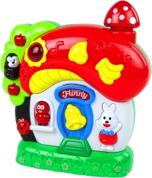 Interaktīvā mājiņa ir lieliska izvēle ikdienas rotaļām un vakara nomierināšanai. Dabas skaņas mazuli nomierina un sagatavo miegam, savukārt dzīvnieciņi izdod savas raksturīgās skaņas. Ar dubultu nospiešanu ieslēdzas muzikālais pavadījums, bet par vizuālajiem iespaidiem rūpējas mazs spīdošs mušmire un gaismiņa uz jumta.