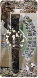 Izklaidējošs bērnu pulkstenis ar dinozaura motīvu apvieno digitālu laika attēlojumu un iebūvētu projektoru, kas projicē dinozaura attēlu uz sienas vai griestiem. Pateicoties viegli regulējamai plastmasas siksniņai, tas ir ērts valkāšanā un ideāli piemērots mazajiem piedzīvojumu meklētājiem no 3 gadu vecuma.