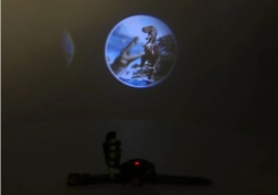 - Laika attēlojums, gaismas projektors ar dinozaura motīvu