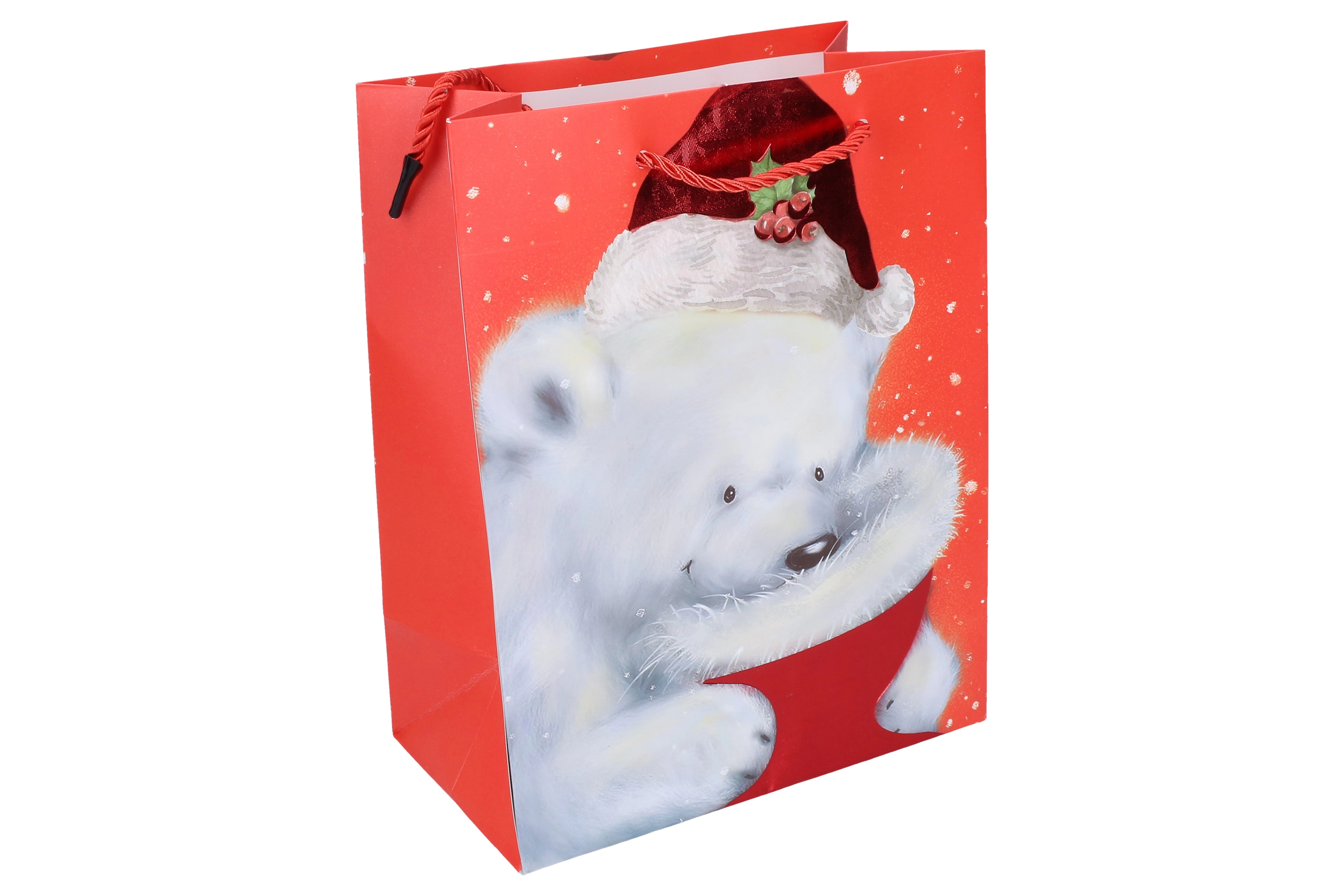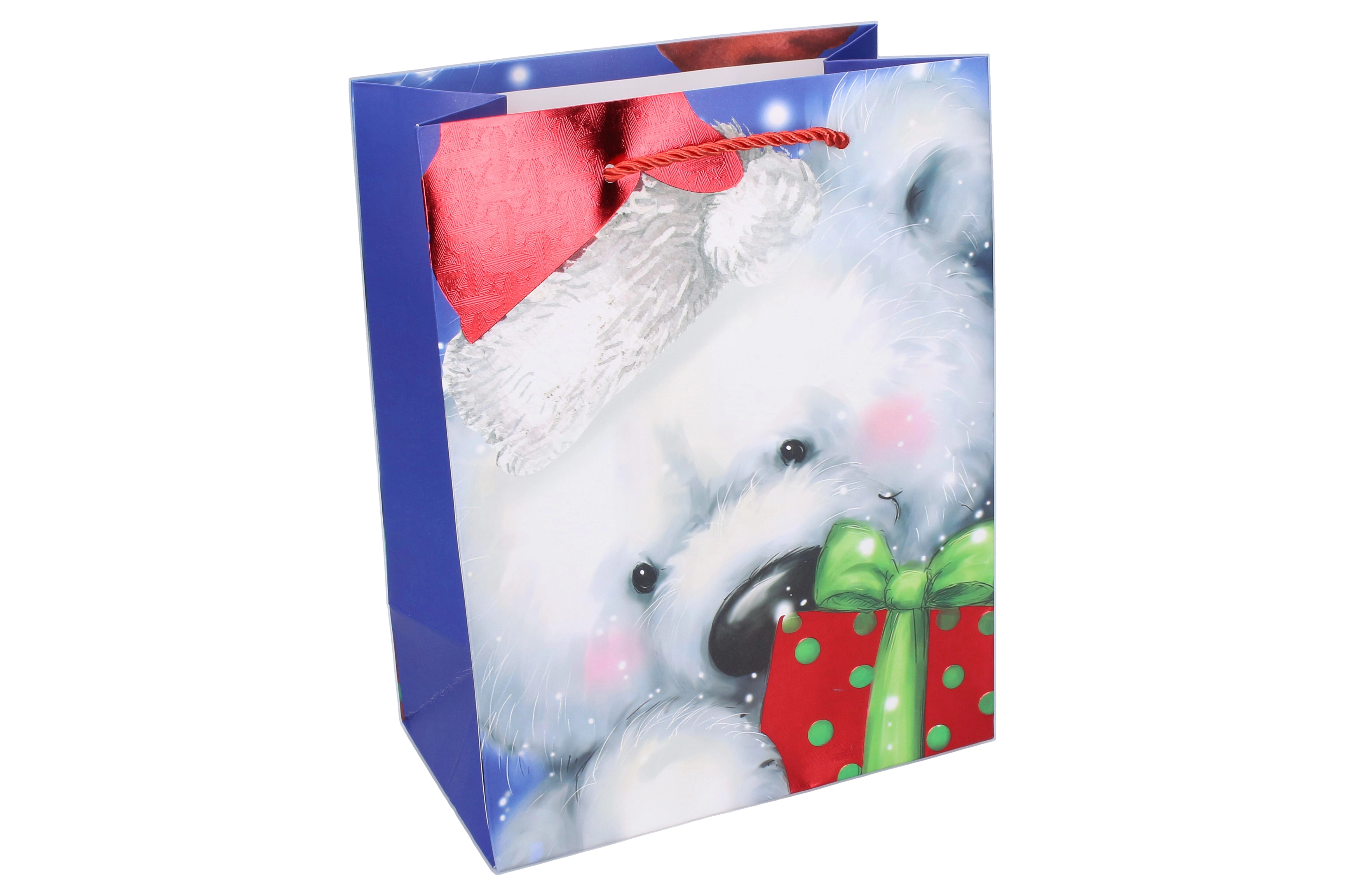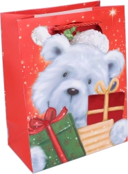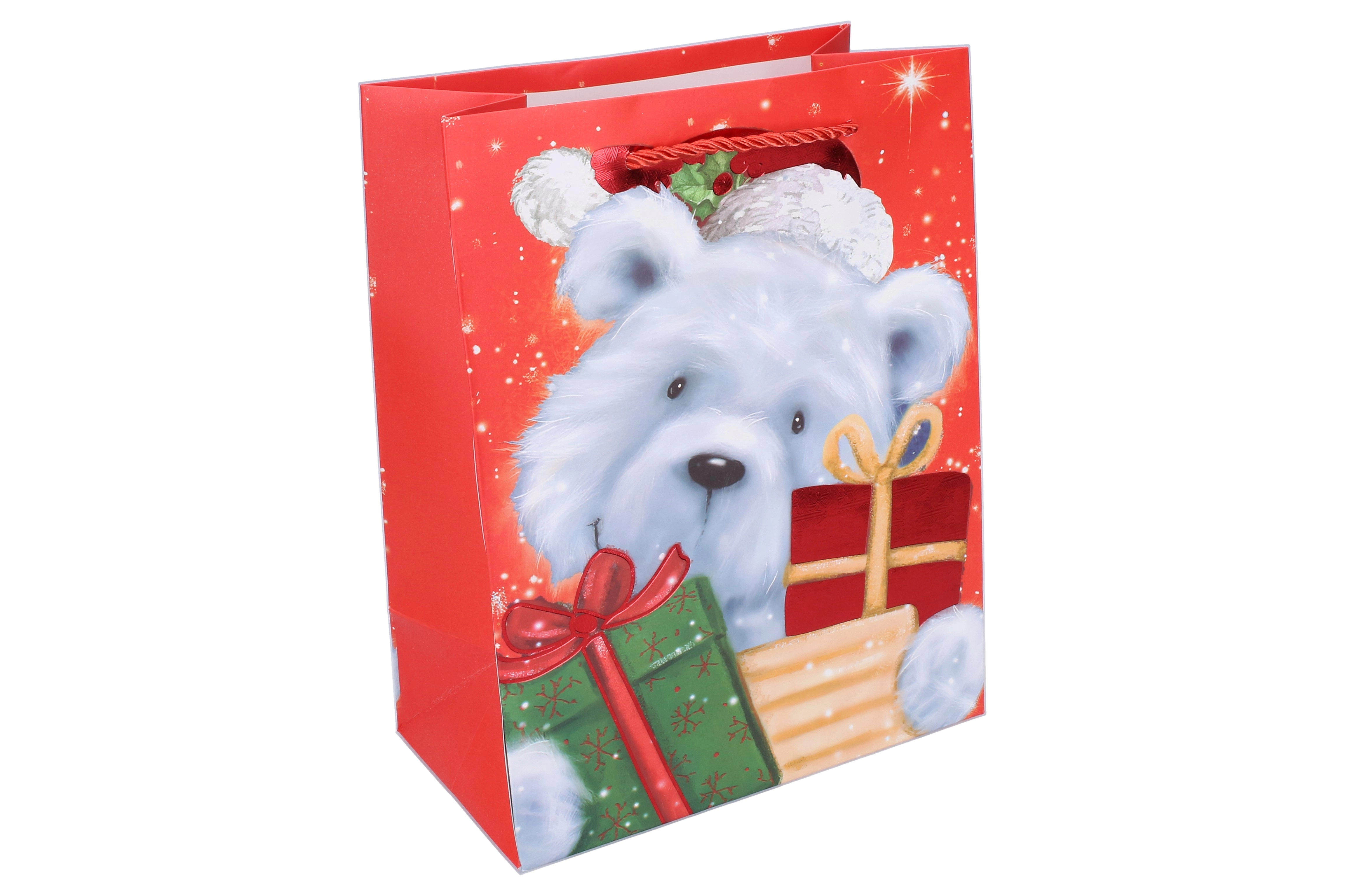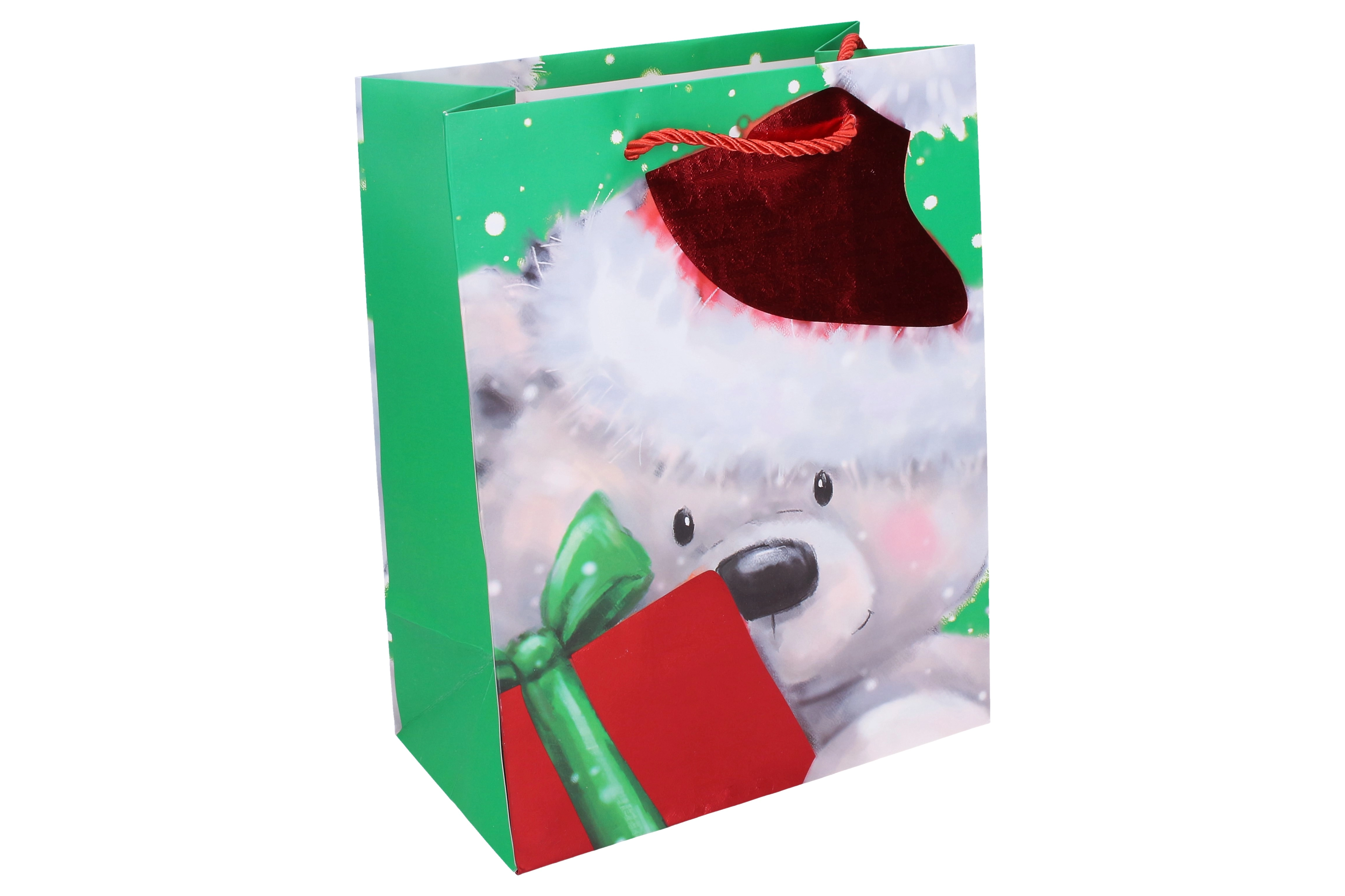 Stilīgs Ziemassvētku dāvanu maisiņš M izmērā ērtai un elegantai dāvanu iesaiņošanai. Ideāli piemērots vidēja izmēra dāvanām, ar izturīgiem rokturiem un kvalitatīvu apdruku. Praktiski izmēri, ziemassvētku motīvs un izturīgs izpildījums atkārtotai izmantošanai.