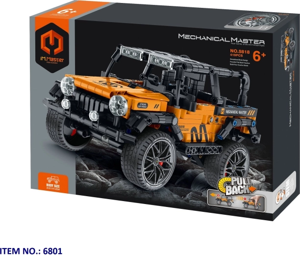 Uzkonstruējiet realistisku apvidus auto ar kvalitatīvo iM.Master konstruktoru. Komplektā ir 434 detaļas, atvilkšanas mehānisms braukšanai, atveramas durvis un funkcionējoši aizmugurējie amortizatori vēl labākai spēles pieredzei. Modeļa izmēri: 20,3 × 11 × 11,2 cm.