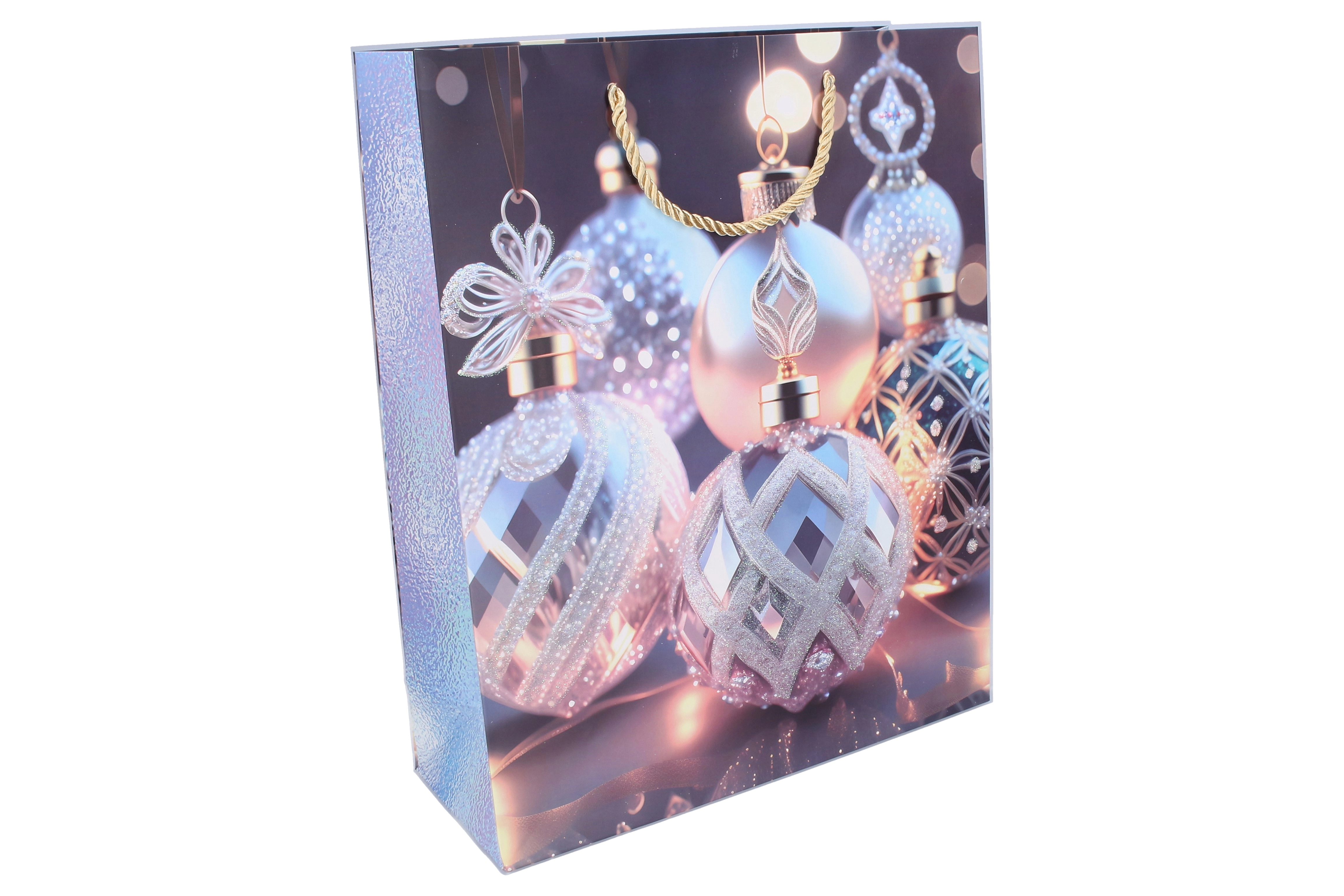 Ziemassvētku dāvanu maisiņš M izmērā atvieglo dāvanu pakošanu un piešķir tām svētku izskatu. Pateicoties izturīgam papīram un kvalitatīviem rokturiem, maisiņš ir piemērots vidēja izmēra un smagākām dāvanām, kuras vēlaties pasniegt stilīgi un bez raizēm.