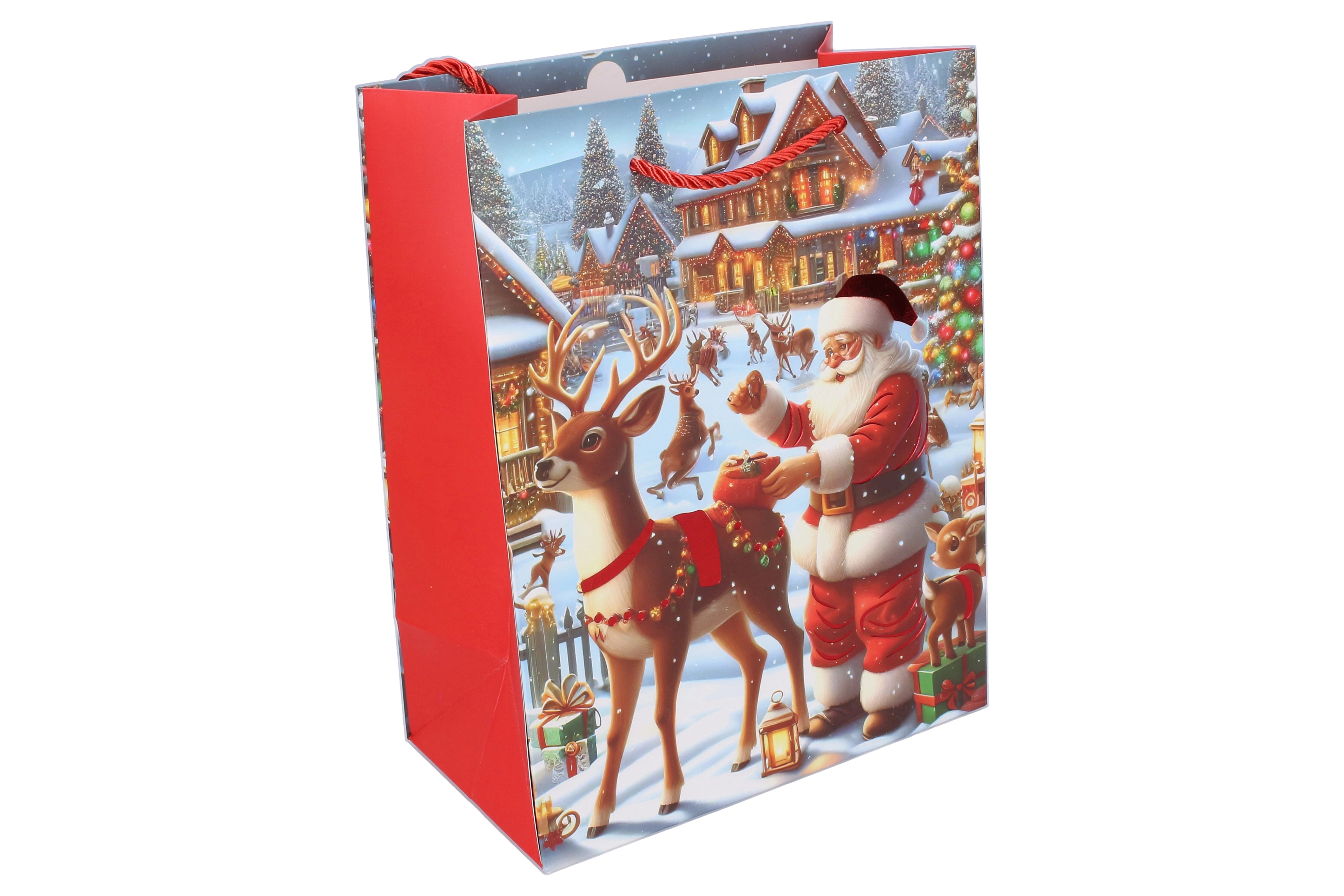 Stilīgs dāvanu maisiņš L izmērā ar izmēriem 32 × 41,5 × 12 cm ir ideāli piemērots lielāku dāvanu iepakošanai. Piedāvā ziemassvētku motīvu, izturīgu izpildījumu un ērtu pārnēsāšanu. Pieejams 4 motīvu variantos perfektai svētku atmosfērai.
